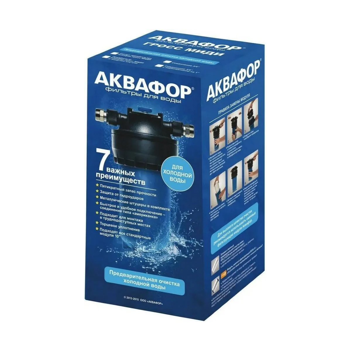 Гросс миди (10'') - корпус предфильтра для холодной воды. Используются полипропиленовые модули пористостью 5мкм, 10мкм и 20мкм для холодной воды. Эффективно удаляя песок, ржавчину, взвесь и другие примеси, Гросс облегчает работу фильтра для питьевой воды, защищает бытовую технику от поломок, делает приём ванны или душа более приятным.Гросс миди (10'') выполнен из стеклонаполненного пластика, выдерживает высокое давление и оснащён удобным поворачивающимся кронштейном. Может использоваться сменный модуль - В510-12. Замену фильтрующего модуля сильно упрощает быстроразъемное крепление.