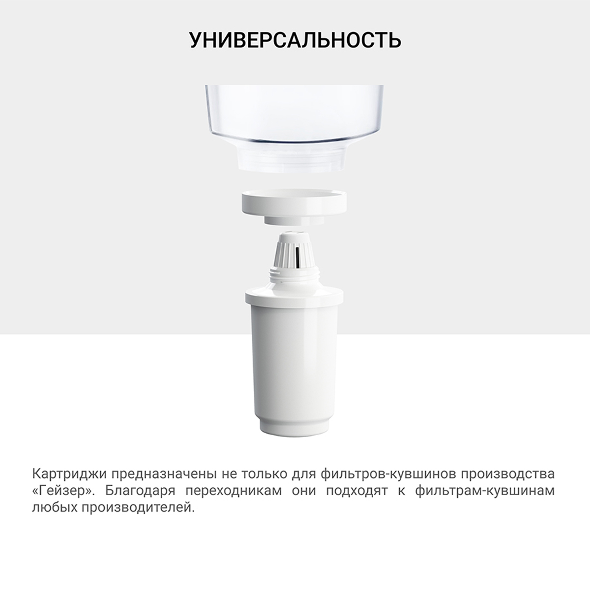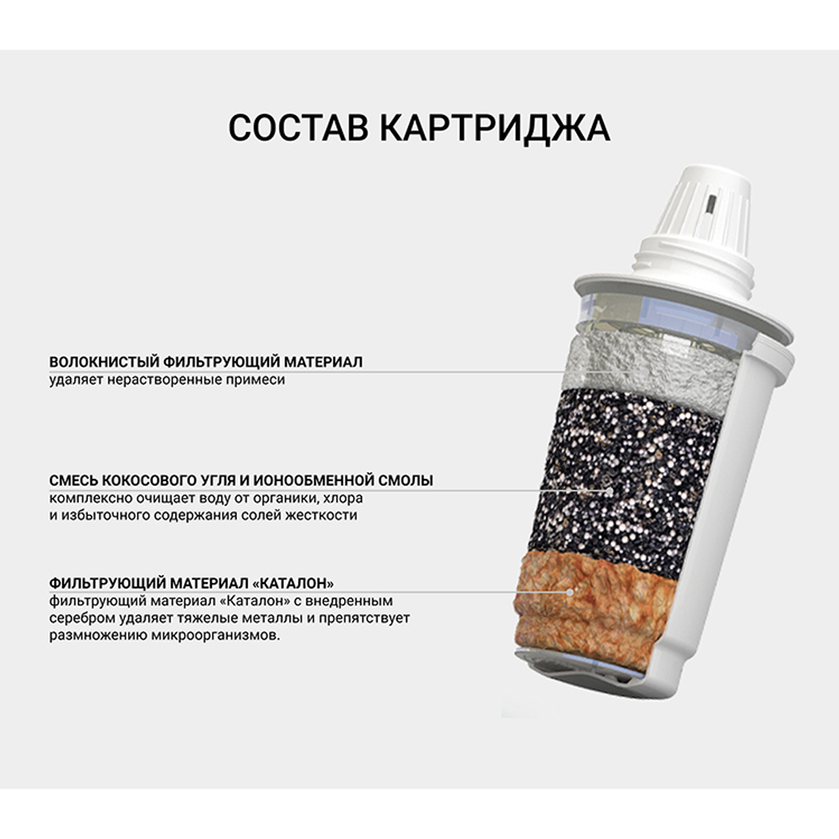 Сменные картриджи имеют одинаковые присоединительные размеры, взаимозаменяемы и могут устанавливаться в любой фильтр-кувшин Гейзер (а с использованием переходников – в кувшины других производителей).Картридж 302 для жесткой воды имеет пять степеней очисткиМатериал Каталон удаляет железо, тяжелые металлы, органические и хлорорганические соединенияИонообменная смола для снижения жесткости водыВысококачественный кокосовый уголь удаляет хлор, органические и хлорорганические соединения; устраняет неприятные запахи и привкусы водыСеребро в металлической несмываемой форме для подавления жизнедеятельности болезнетворных бактерийМеханический постфильтр предотвращает вынос фильтрующих материалов в очищенную воду.Набор сменных фильтрующих картриджей (2 шт) для фильтров-кувшинов Гейзер 302 для жесткой воды . Основой модуля является разработанный и запатентованный волокнистый материал Каталон, который очищает воду от всех известных загрязнений водопроводной воды, снижает жесткость, улучшает вкус воды. Фильтрующий модуль имеет пять ступеней очистки: Материал Каталон удаляет железо, тяжелые металлы, органические и хлорорганические соединения, задерживаетвирусыИонообменная смола - удаление растворенных примесейВысококачественный кокосовый уголь удаляет хлор, органические и хлорорганические соединения; устраняет неприятные запахи и привкусы водыСеребро в металлической несмываемой форме подавляет жизнедеятельности болезнетворных бактерийМеханический постфильтр предотвращает вынос фильтрующих материалов в очищенную воду.Температура очищаемой воды не более 40°СРекомендуемый срок службы 3 месяцаРесурс 250 л.Температура воды: для холодной водыТип воды: жесткая