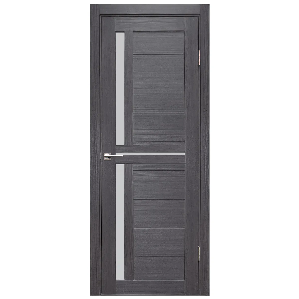Конструкция: царговая, состоит из двух стоевых деталей и поперечных соединительных элементов различных сечений; основа сосна, филенки и подложка из утолщенного МДФ.Остекление: матовое – сатинат, Black лакобель.Покрытие: экошпонРазмер полотна: 38×800×2000мм