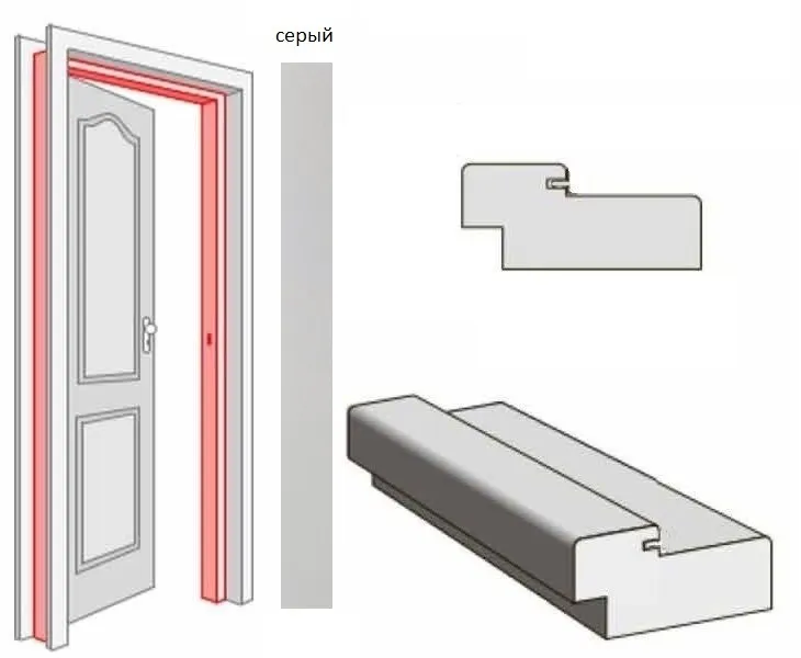 Коробка крепится в дверном проеме и на которой размещены петли для установки подвижной части – дверного полотна. Она непосредственно примыкает к стенке дверного проема.