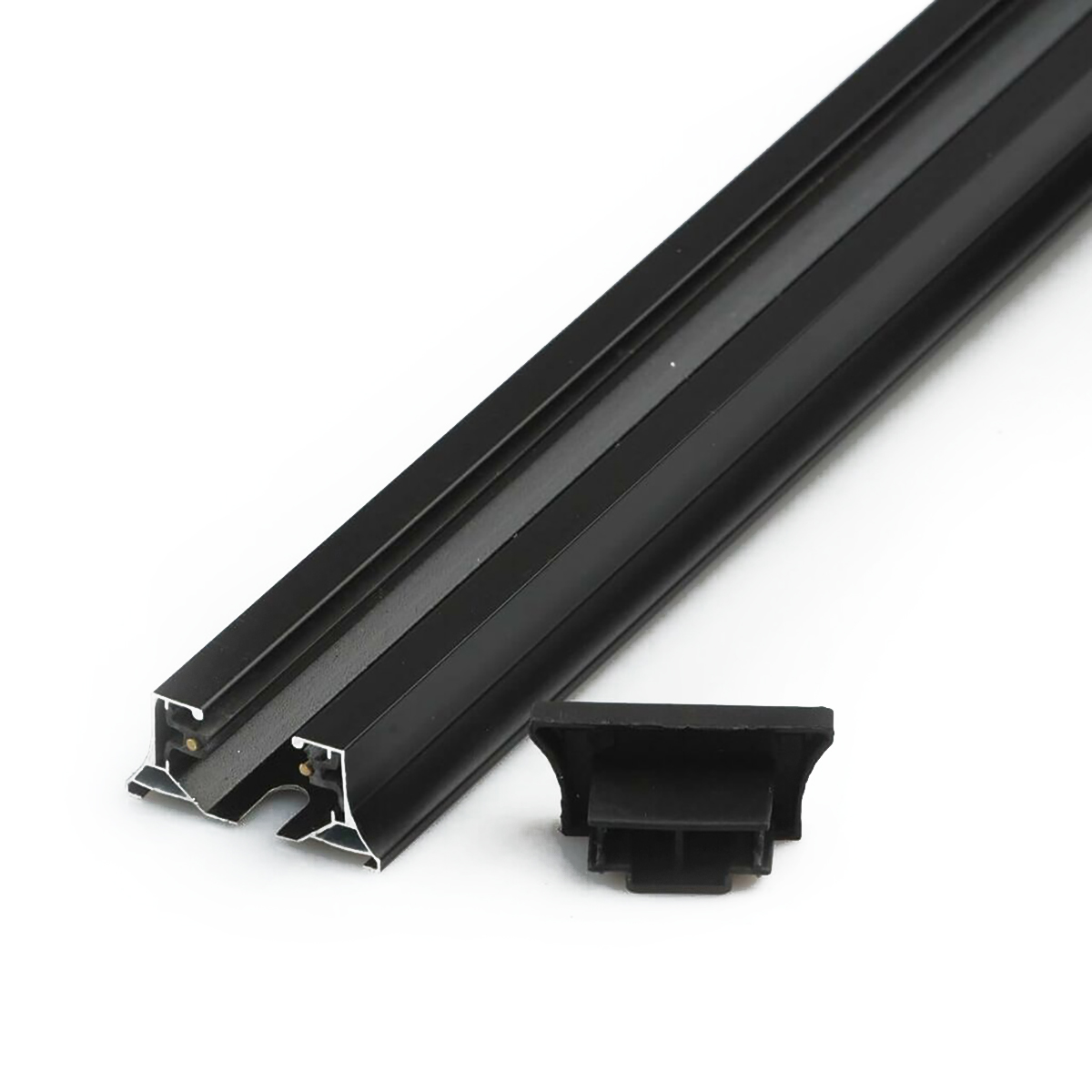 Однофазный (двух проводной) шинопровод прямоугольного сечения ? это рельс для светодиодных трековых светильников, изготовлен из алюминия, окрашенного черной краской. Светильники к шинопроводу могут подключаться при помощи переходника. На шинопровод устанавливаются приборы, рассчитанные на рабочее напряжение 220 Вольт. Шинопровод закрепляется на подвесах либо на несущую поверхность с помощью винтов или на металлические скобы крепления. Систему шинопровода можно подвешивать на любую высоту, создавать независимые группы светильников и даже встраивать в стену и потолок.