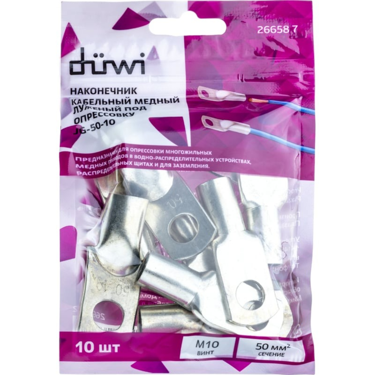 Медный кабельный наконечник луженый под опрессовку JG-50-10-11 используют для работы с медными проводами. С одной стороны наконечника располагается прижимная часть, а с другой стороны трубчатое отверстие для провода. Наконечники этого типа применяются для установки электроприборов, подключения вводно-распределительных устройств и для заземления. Подходит для медных проводов сечением 50 мм2. Для работы с наконечниками данного типа применяется специальный инструмент - кримпер силовой для обжима наконечников и гильз (арт.26123 0). Наконечник для многожильного провода позволяет создать надежное соединение с различными компонентами электроцепи: винтовым зажимом, клеммником, бытовым электроприбором, другим кабелем.Тип: наконечник кольцевой прямойТип монтажа: опрессовка/обжимКоличество в упаковке: 10 штСечение кабеля (Cu): 50 мм²Крепление винта: М10Наличие изоляции: нетИзоляция: нетМатериал: медь луженаяМодельный ряд: JG
