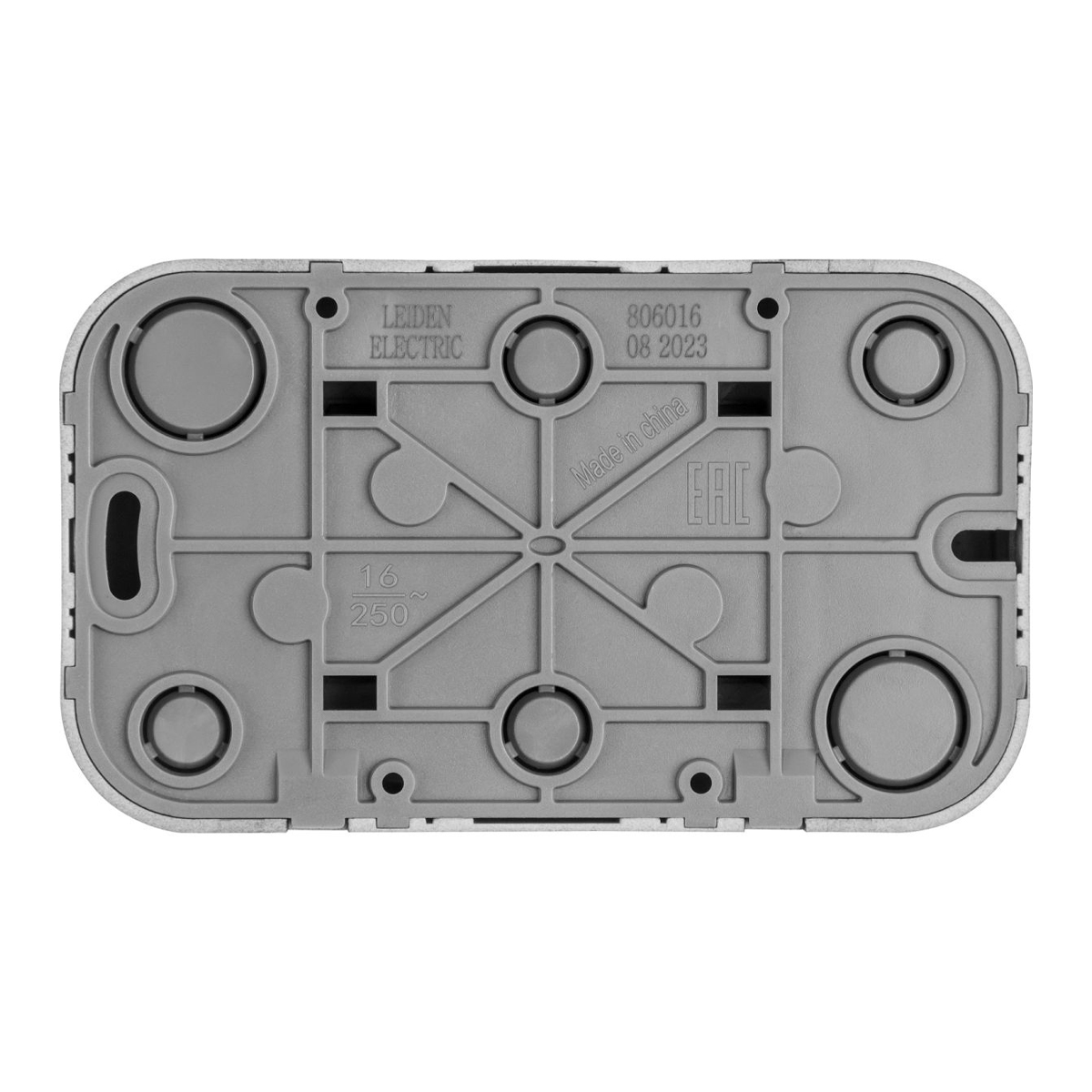 В комплект входит розетка в сборе. На упаковке есть вся необходимая информация. Розетки LEIDEN ELECTRIC разработаны и изготовлены в полном соответствии с IEC 60884. Отличительной особенностью является прочный пластиковый корпус из огнестойкого поликарбоната и полностью латунная группа.Технические характеристики: Цвет корпуса: черный; Материал корпуса: PC (поликарбонат); Степень защиты: IP20; Тип монтажа: открытый; Тип зажима: винтовой; Номинальное напряжение: 250 В; Номинальный ток: 16 А; Габаритные размеры: 110х65х32 мм