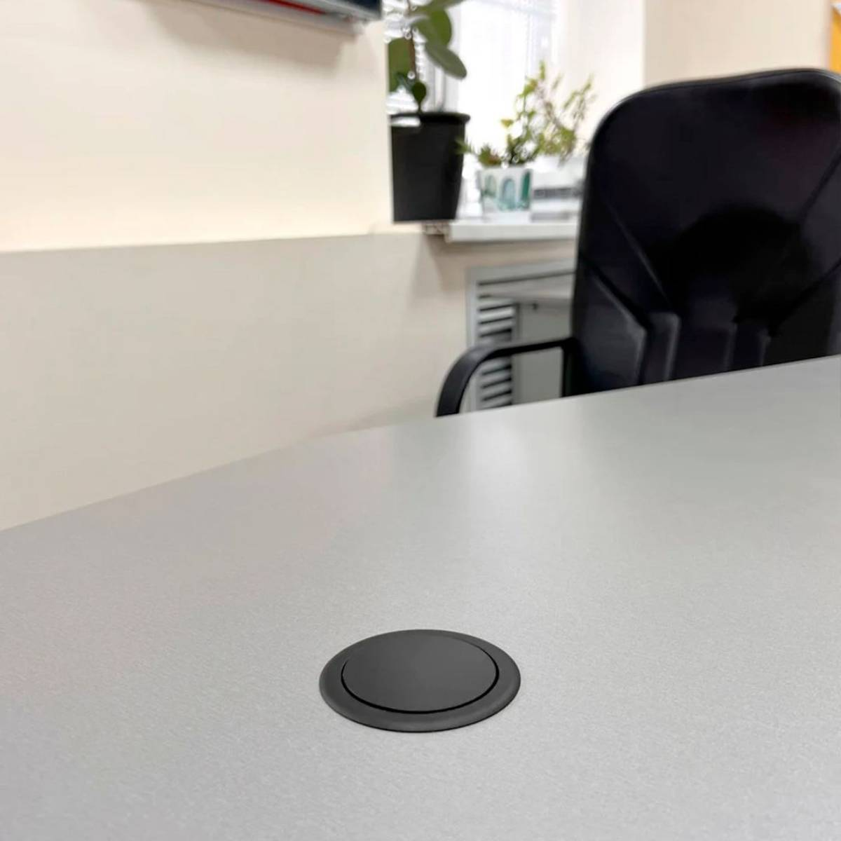 Вертикальный настольный бокс с кабелем и USB Type-C, для фиксированного монтажа в столешнице, пластиковая крепежная манжета окрашена в цвет крышки. Монтаж выполняется через отверстие в столешнице Ø 60 мм.Комплектация: с 2 розетками 33° и 1 USB, 1 Type-C с защитным контактом, с сетевым кабелем 1,8 м с угловым штекером CEE 7/7. Бокс устанавливается только в столешницах с толщиной не более 50 мм.