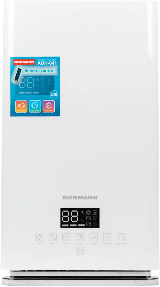 Потребляемая мощность: 30 ВтМетод увлажнения: ультразвуковойОбъем резервуара для воды: 5 лАвтоматическое поддержание уровня влажностиРасположение датчика влажности: встроенныйПроизводительность увлажнения: 375 мл/чУровень шума: 35 дБ (максимум)Управление: сенсорноеАвтоматические программы: естьИндикация: влажности, отсутствия воды, уровня выхода параПодсветка корпуса: естьТаймер: естьДистанционное управление: естьМаксимальная поддерживаемая влажность: 80 %Режим "Теплый пар": естьПродолжительность увлажнения: 10 часовЗащита от известкового налета: естьИонизация: естьОбслуживаемая площадь: 40 кв.мВес: 2.1 кгДлина: 21 cмШирина: 19 смВысота: 39 см