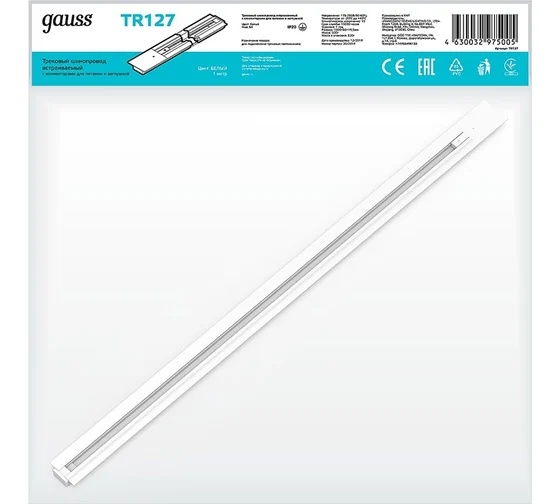 Встраиваемый шинопровод Gauss TR127 с коннекторами для питания и заглушкой предназначен для организации трекинговых систем освещения. Длина 1 м позволяет гибко использовать его в различных интерьерах, а белый цвет гармонично вписывается в современный дизайн помещений. Степень пылевлагозащиты IP20 делает изделие безопасным для применения в сухих жилых и рабочих комнатах.