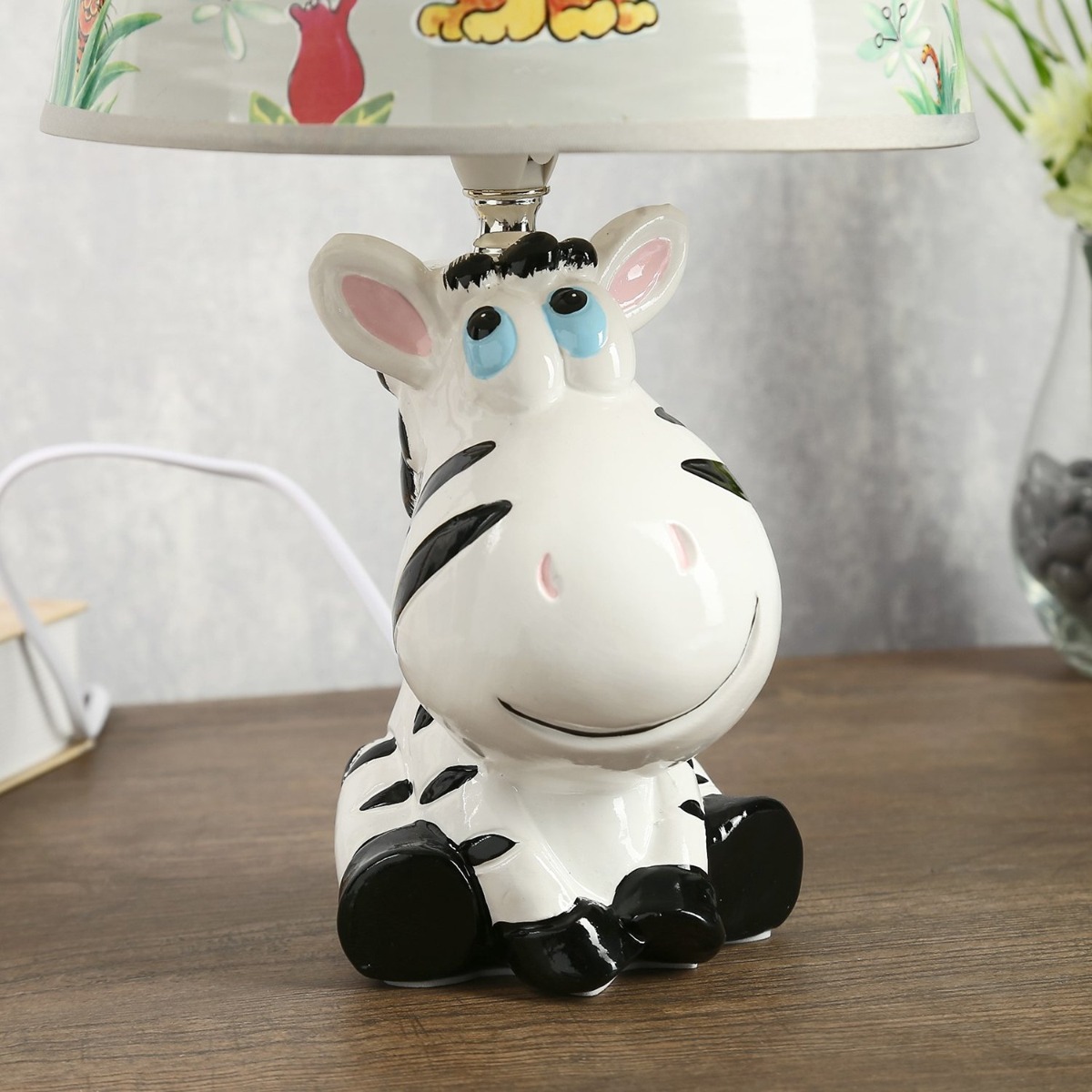 Светильник "Зебра" отлично впишется в интерьер детской комнаты. Пусть этот милый забавный дружок будет вашим верным помощником. Оставляйте свет включённым, если ребёнок боится засыпать в темноте, и будьте уверены, что тёплое освещение не помешает ему погрузиться в царство Морфея.Размещайте провода и другие непредназначенные для детских ручек детали таким образом, чтобы ваш малыш до них не дотянулся.Характеристики:Количество ламп: 1Цоколь: e14Мощность на цоколь, Вт: 40Лампа в комплекте: нетМатериал основания: керамикаГабариты товара (длина × ширина × высота): 20 см × 20 см × 32 см