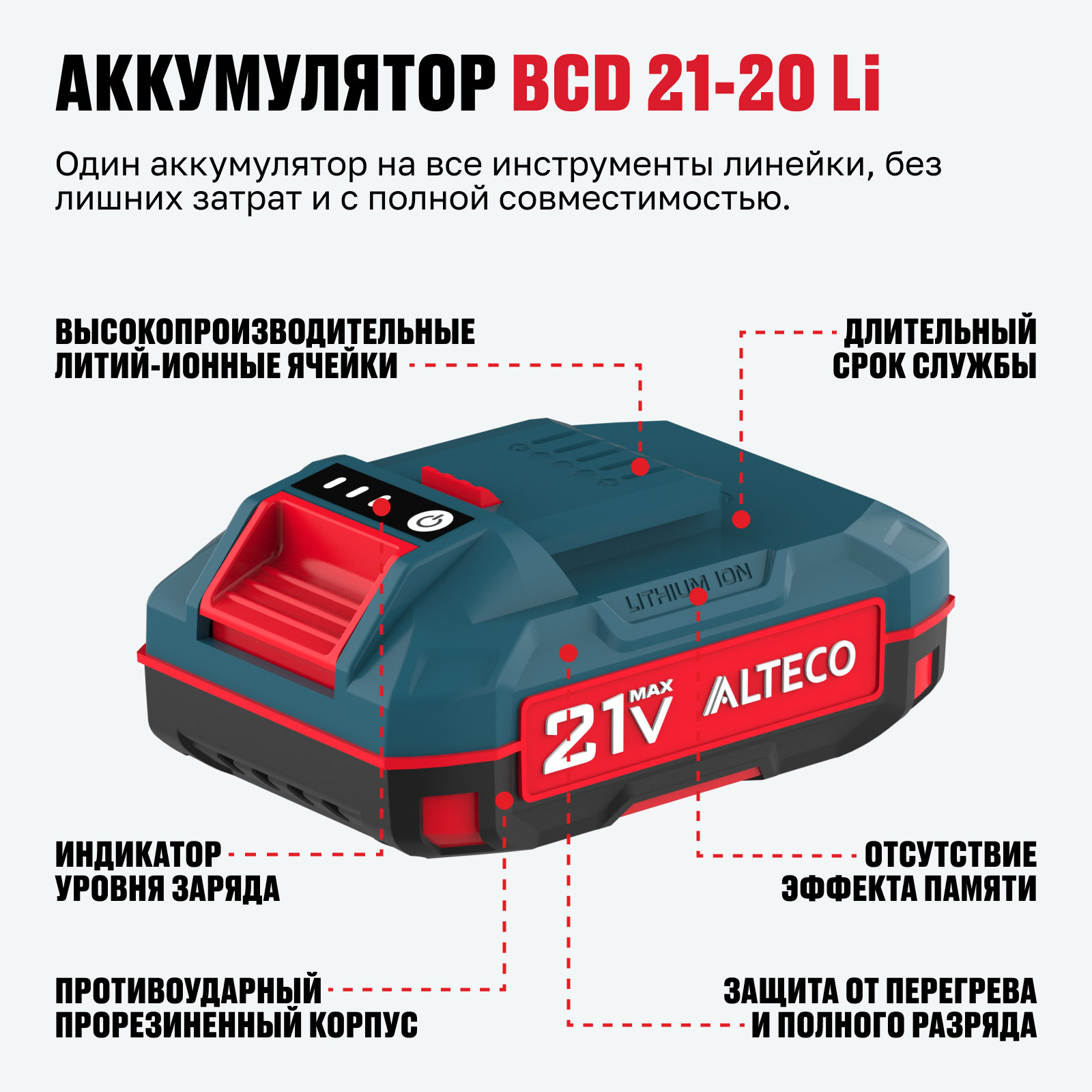 Аккумулятор ALTECO BCD 21-20 Li × 1 шт