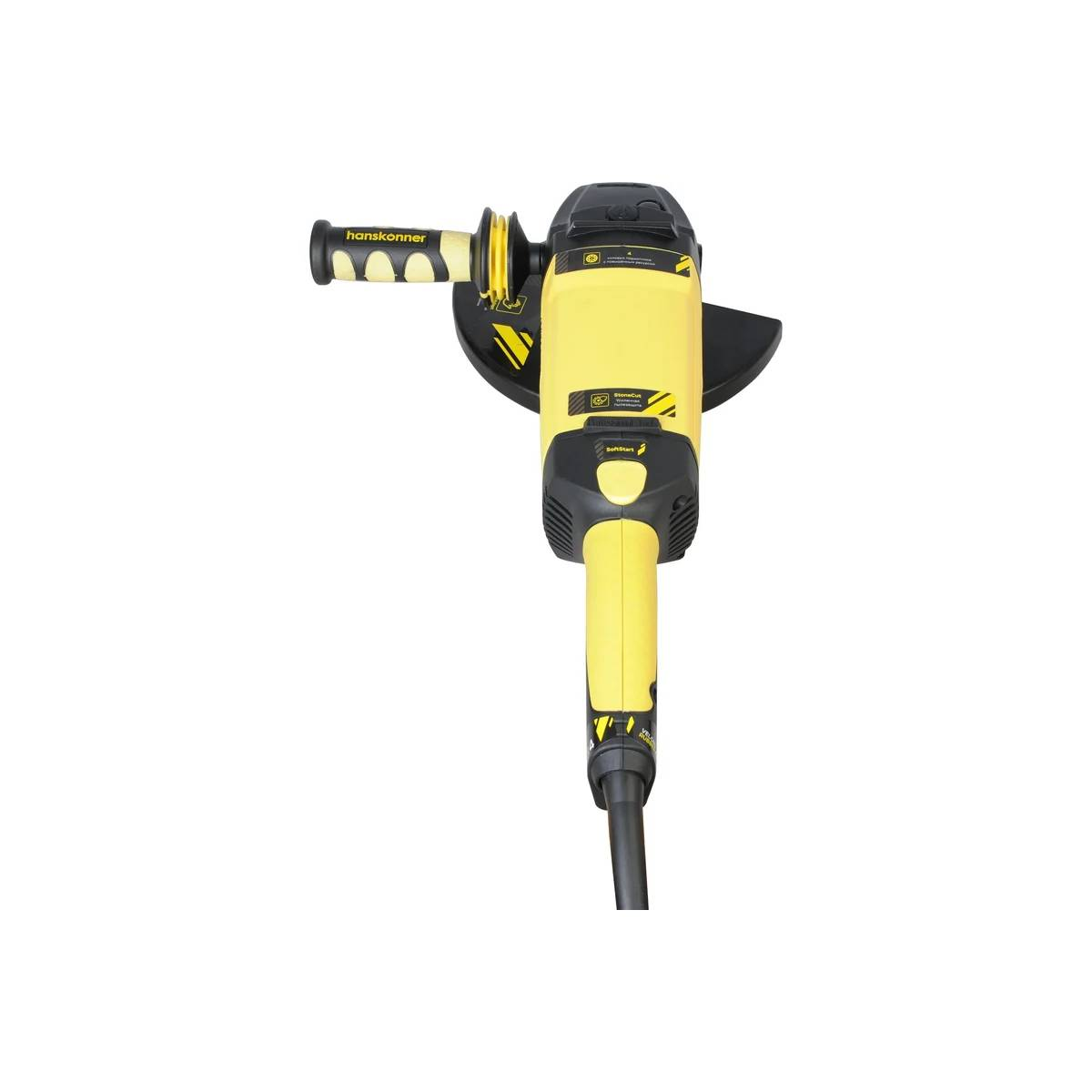 Угловая шлифмашина применяется в строительстве и ремонте для выполнения отрезных и шлифовальных работ. Для начала работы без рывков, в инструменте предусмотрен плавный пуск. Дополнительная рукоятка является антивибрационной, что делает рабочий процесс гораздо комфортнее. Наличие кожуха препятствует попаданию искр и пыли на пользователя. Характеристики:Напряжение: 220 ВМощность: 2400 ВтТип двигателя: щеточныйДиаметр диска: 230 ммПосадочный диаметр: 22.2 ммРезьба шпинделя: М14Число оборотов: 6500 об/минЭлектр. регулировка оборотов: нетВид кнопки включения: нажимнаяСуперфланец: нетБыстрозажимная гайка SDS: нетРабота по бетону (камню): даРегулировка положения кожуха без инструмента: даПоддержание постоянных оборотов под нагрузкой: даВозможность подключения к пылесосу: нетНаличие виброручки: даДлина кабеля: 4 мПлавный пуск: даКожух для пылеудаления: нетДиск в комплекте: нетКоличество положений рукоятки: 3Вес нетто: 6.7 кгПреимущества:Блокировка шпинделя - для простой смены оснасткиВозможна работы по камнюТрехпозиционная дополнительная рукоятка - для надежного удержания инструментаДлинный сетевой резиновый кабель с хомутом-липучкой для хранения - VELCROЛегкий доступ к щеткам - для самостоятельной их замены