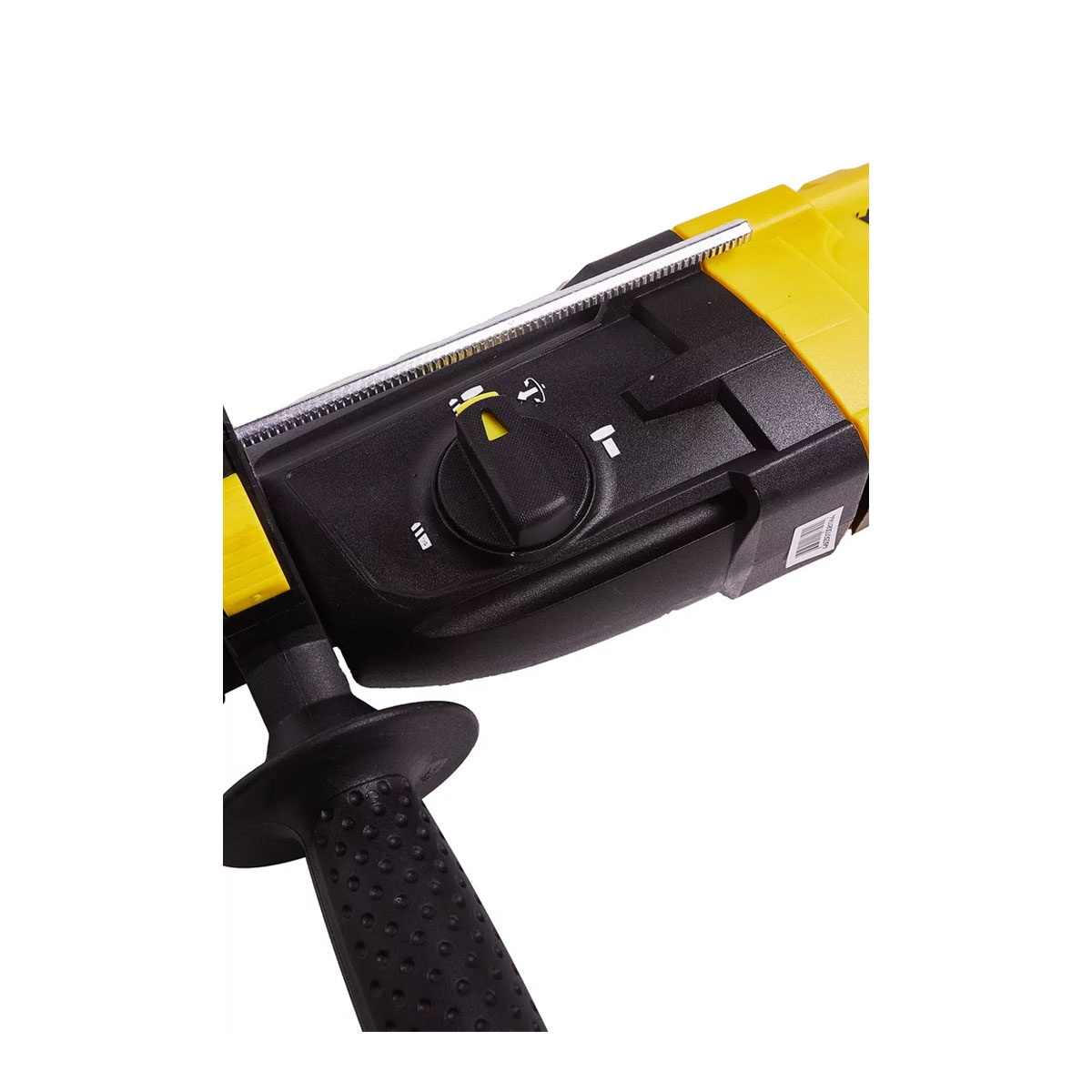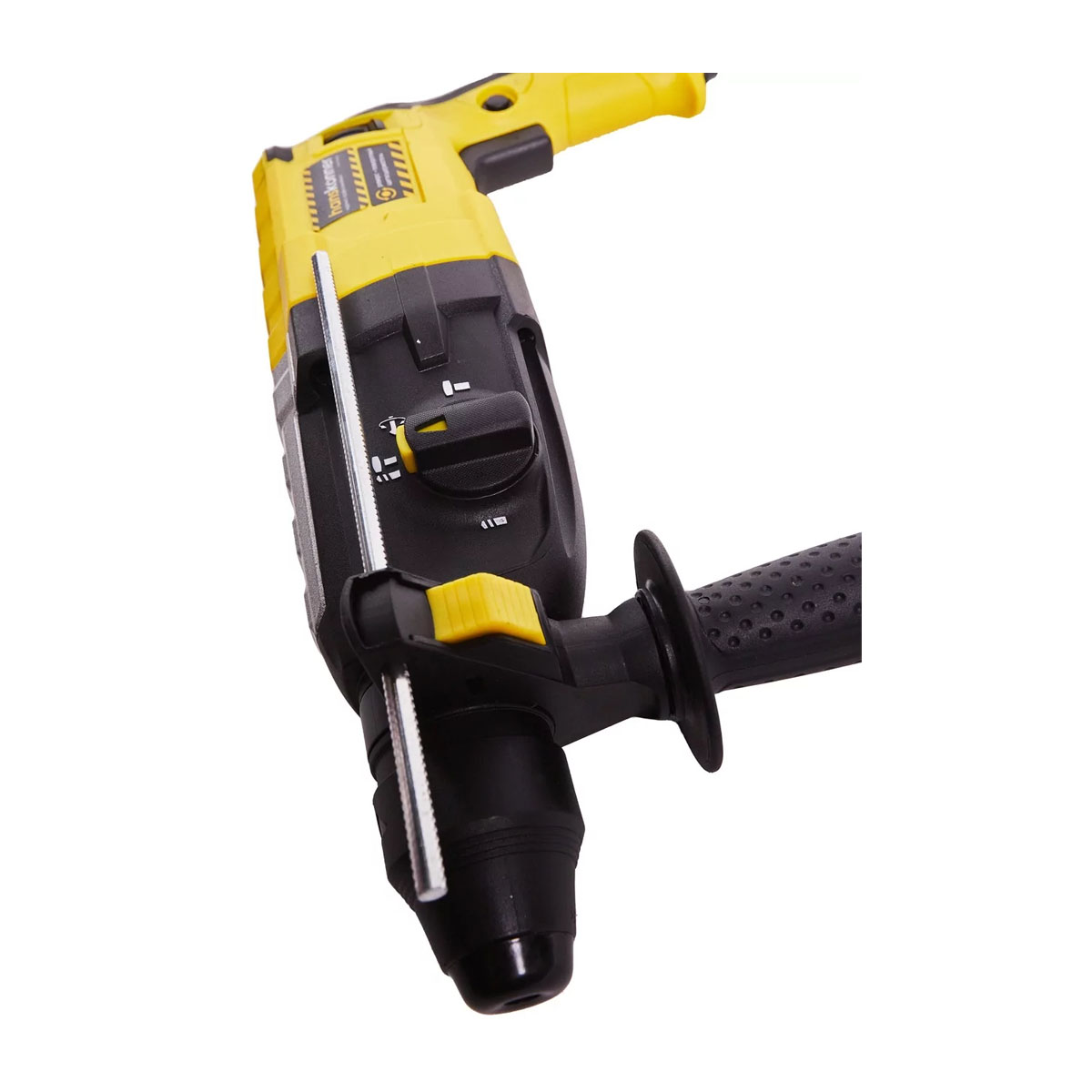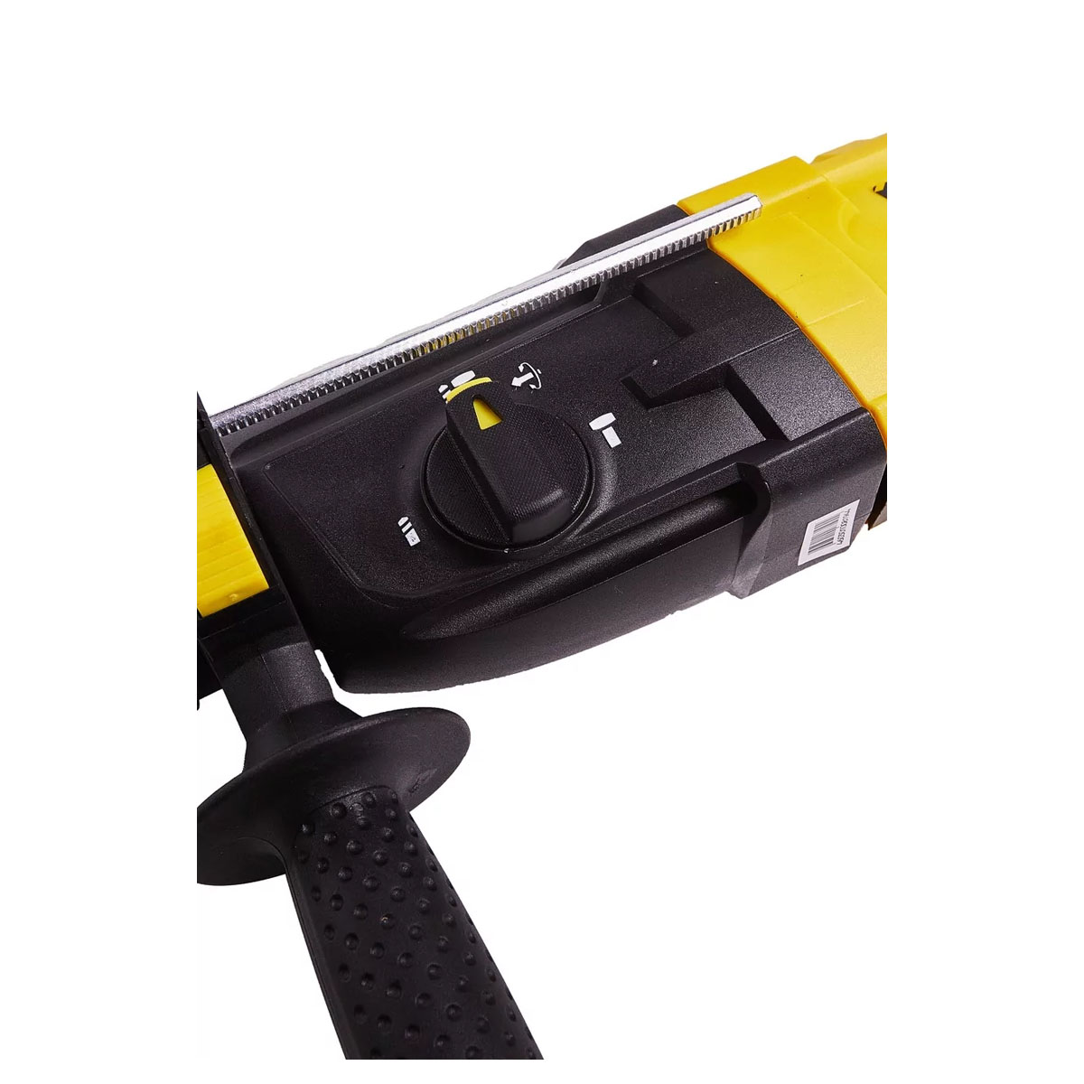 Мощная модель для продолжительных работ оснащена функциями удара, сверления и сверления с ударом, а также практичным режимом установки долота в любых угловых положениях для удобства работ. Механизм снабжен увеличенным количеством смазки для предотвращения перегрева. Оптимальное сочетание энергии и скорости удара позволяет сверлить отверстия быстро и без чрезмерных усилий. Плавная регулировка оборотов позволяет аккуратно начинать засверливание и использовать перфоратор в качестве миксера с применением специальных насадок. Патрон SDS-plus для быстрой и удобной смены оснастки. Фиксация клавиши пуск для удобства продолжительной работы. Эргономичный корпус имеет резиновую противоскользщую вставку на задней рукоятке, выполнен с применением нейлона, стойкого к ударам и низким температурам. Дополнительная рукоятка с креплением для ограничителя глубины сверления быстро регулируется в наиболее удобное для оператора положение с помощью одной руки.Характеристики:Реверс: даРежимы: сверление/сверление с ударом/ударПатрон: SDS PlusВид упаковки: пластиковый кейсЭнергия удара, Дж: 3,2Напряжение питания (В): 220Максимальная мощность (Вт): 850Защитная муфта: даСкорость вращения (об мин): 0-1300Длина кабеля питания (м): 4Частота ударов (уд мин): 0-5100Регулировка оборотов двигателя: даРазмер инструмента (длина*высота) (мм): 390x210Комплектация: перфораторсмазка для хвостовиков буровограничитель глубины сверлениядополнительная рукояткаинструкция по эксплуатациикейс