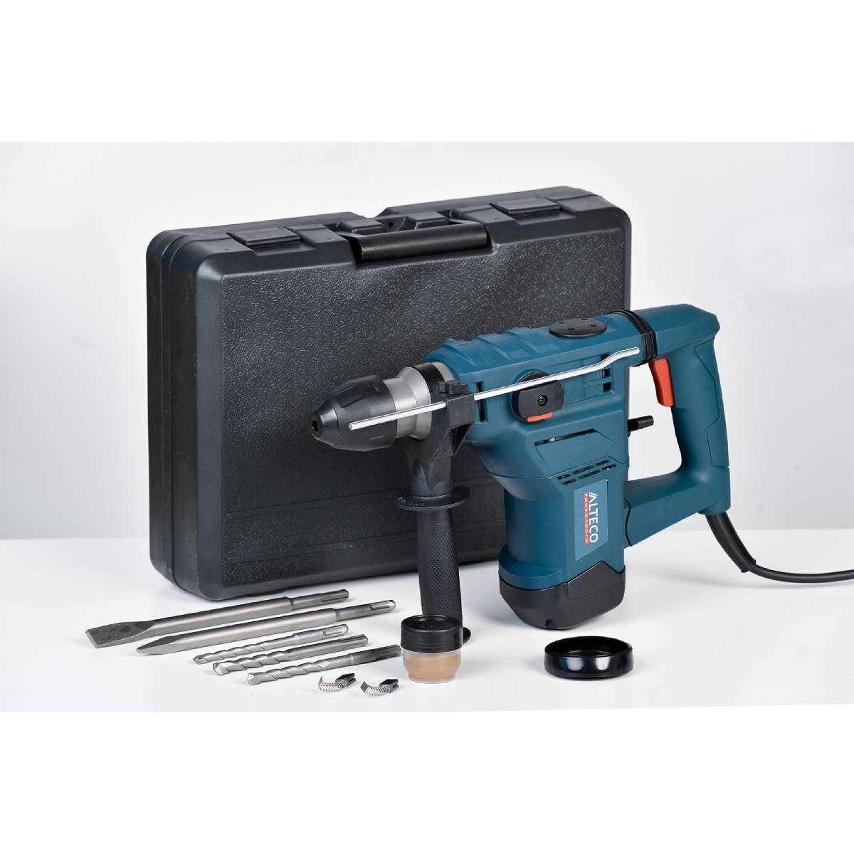 Перфоратор ALTECO RH 1500-32 SDS-Plus имеет 3 режима работы (сверление с ударом, долбление), а также возможность поворота долота. Мощный двигатель 1500 Вт обеспечивает энергию удара 5 Дж. Инструмент снабжен патроном SDS-Plus для быстрой замены расходного материала.Особенности ALTECO RH 1500-32 SDS-Plus Реверс.Виброгасящая основная рукоятка.3 режима работы: сверление, долбление, сверление + долбление.Комплектация:Инструкция по эксплуатации.Дополнительная рукоятка.Зубило плоское 14x250 мм.Зубило пикообразное 14x250 мм.Буры по бетону - 8 / 10 / 12x150 мм.Ограничитель глубины.Характеристики:Тип патрона: SDS-Plus.Параметры сети: 220/50 В/Гц.Мощность: 1500 Вт.Число оборотов: 800 об/мин.Число ударов: 3900 уд/мин.Энергия удара: 5 Дж.Сверления в бетоне: 32 мм.Сверления в стали: 13 мм.Сверления в дереве: 40 мм.Регулировка оборотов: нет.Металлический корпус редуктора: нет.Класс безопасности llВес нетто: 7.4 кг.