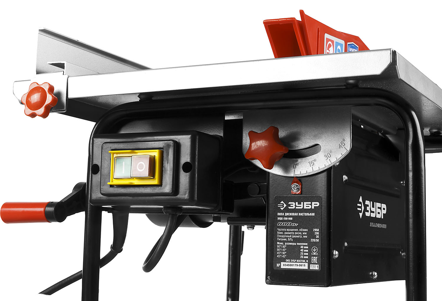 Широкий диапазон возможностей, простая, а значит надежная, конструкция и все необходимые защиты - отличительная черта данного инструмента. Он просто делает свою работу, практически не требуя обслуживания, исключая неправильные действия и обеспечивая отличный результат!ОсобенностиПила настольная дисковая предназначена для пиления заготовок из дерева под различными углами, а также под наклоном.Электромагнитный выключатель предотвращает случайное включение при внезапном восстановлении напряженияПростая и удобная машина для всех распиловочных работ: продольного, наклонного, косого и комбинированного пиленияЭлектромагнитный выключатель, предотвращающий случайное включение при восстановлении напряжения после пропаданияЗащитный кожух диска автоматически откидывается при подаче заготовки и защищает оператора от травм и поврежденийРегулируемый расклиниватель, препятствующий зажатию дискаПодвижные продольная и угловая направляющие для пиления в размерТолкатель подачи заготовки для безопасного пиления в комплектеВозможность подключения к пылесосуКомплектацияПила настольная - 1 шт.Кожух защитный - 1 шт.Расклиниватель - 1 шт.Продольная направляющая - 1 шт.Упор угловой - 1 шт.Ключ гаечный - 2 шт.Рукоятка - 1 шт.Толкатель подачи заготовки - 1 шт.Гарантия: имеется.ХарактеристикиМощность: 800 ВтЧастота вращения диска: 2950 об/минНапряжение питания: 220 В/50 ГцМаксимальная глубина пиления: 90°/90° 40 ммМаксимальная глубина пиления: 45°/90° 40 ммМаксимальная глубина пиления: 90°/45° 25 ммМаксимальная глубина пиления: 45°/45° 25 ммДиаметр пильного диска: 200 ммПосадочный диаметр пильного диска: 30 ммДиапазон наклонов пильного диска: 0-45°Размер стола: 500х337 ммВнешний/внутренний диаметр пылеотводного патрубка: 35/40 ммВес инструмента: 13,4 кгВес с упаковкой: 15,4 кгТип упаковки: Коробка картоннаяГарантия: 1 год