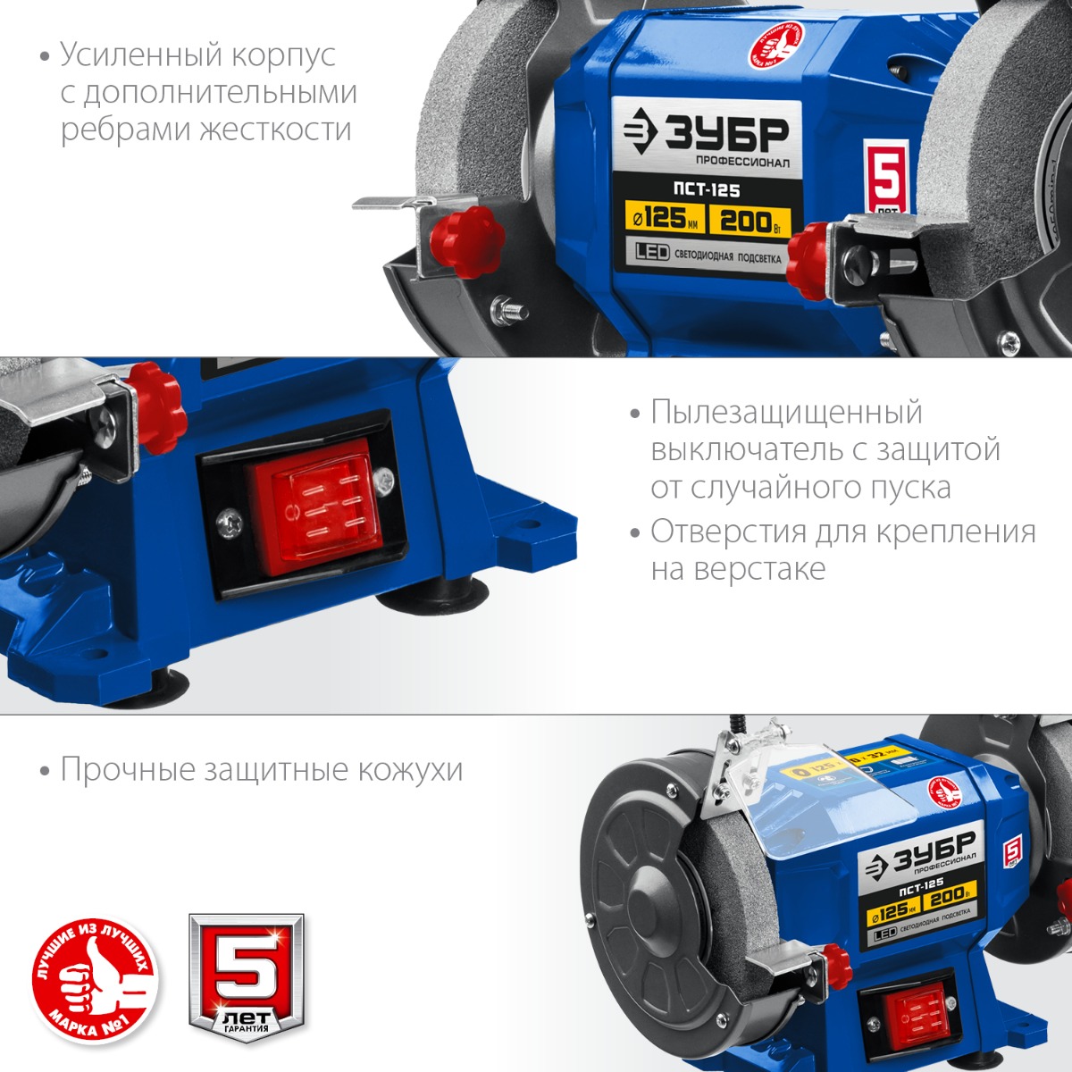 Профессиональный инструмент для мастерской и мелкосерийного производства. Увеличенный ресурс двигателя, повышенная точность установки заточных кругов, опорные подшипники высокого качества, компактный размер, два круга с разной зернистостью.Преимущества:Двигатель большой мощности выполнить даже самую тяжелую работу2 круга разной зернистости для любых работАсинхронный двигатель, не требующий обслуживания весь срок службыLED подсветка рабочей зоныПрозрачные экраны для защиты оператора от продуктов обработкиПылезащищенный выключатель для беспроблемной эксплуатацииВозможность крепления к опорной поверхностиРегулируемый упор для инструмента.Применение: для заточки и сухой шлифовки металлических заготовок и режущего инструмента.Характеристики:Тип станка: ЗаточнойТип электродвигателя: АсинхронныйМощность, Вт: 200Частота вращения, мин-1: 2950Диаметр круга, мм: 125Диаметр посадочного отвверстия, мм: 32Толщина точильного круга, мм: 20Зернистость круга №1: 60Зернистость круга №2: 80Пылезащитный выключатель: естьЗащитные экраны: естьПодсветка: естьРежим работы: S2, 30 минНапряжение питания, В / Гц: ~ 230/50Масса изделия, кг: 4.7Гарантия 1 год.