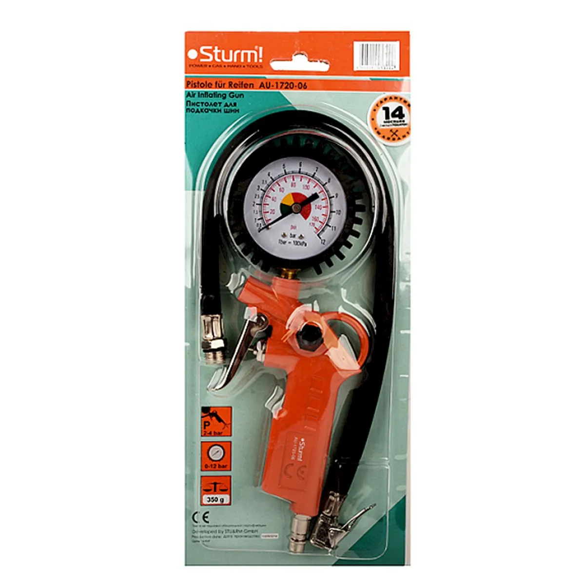 Пневматический инструмент Sturm! AU-1720-06 используется для накачки шин, с манометром .Гибкий шланг обеспечивает лёгкую работу с колесами любого диаметра.Кнопка стравления избыточного давленияМанометрПростота эксплуатацииОсновные характеристики :Тип соединения: Рапид EUROДиаметр воздушного штуцера (дюйм)5 1/4FНазначение: Для накачки шин, с манометром . Идеальны для использования в автосервисе или шиномонтажных мастерских.Давление (бар): 12Вид упаковки: БлистерГабариты в упаковке (ДхШхВ, см): 31x13,5x4Вес инструмента в сборе без упаковки и аксессуаров (кг): 0,25
