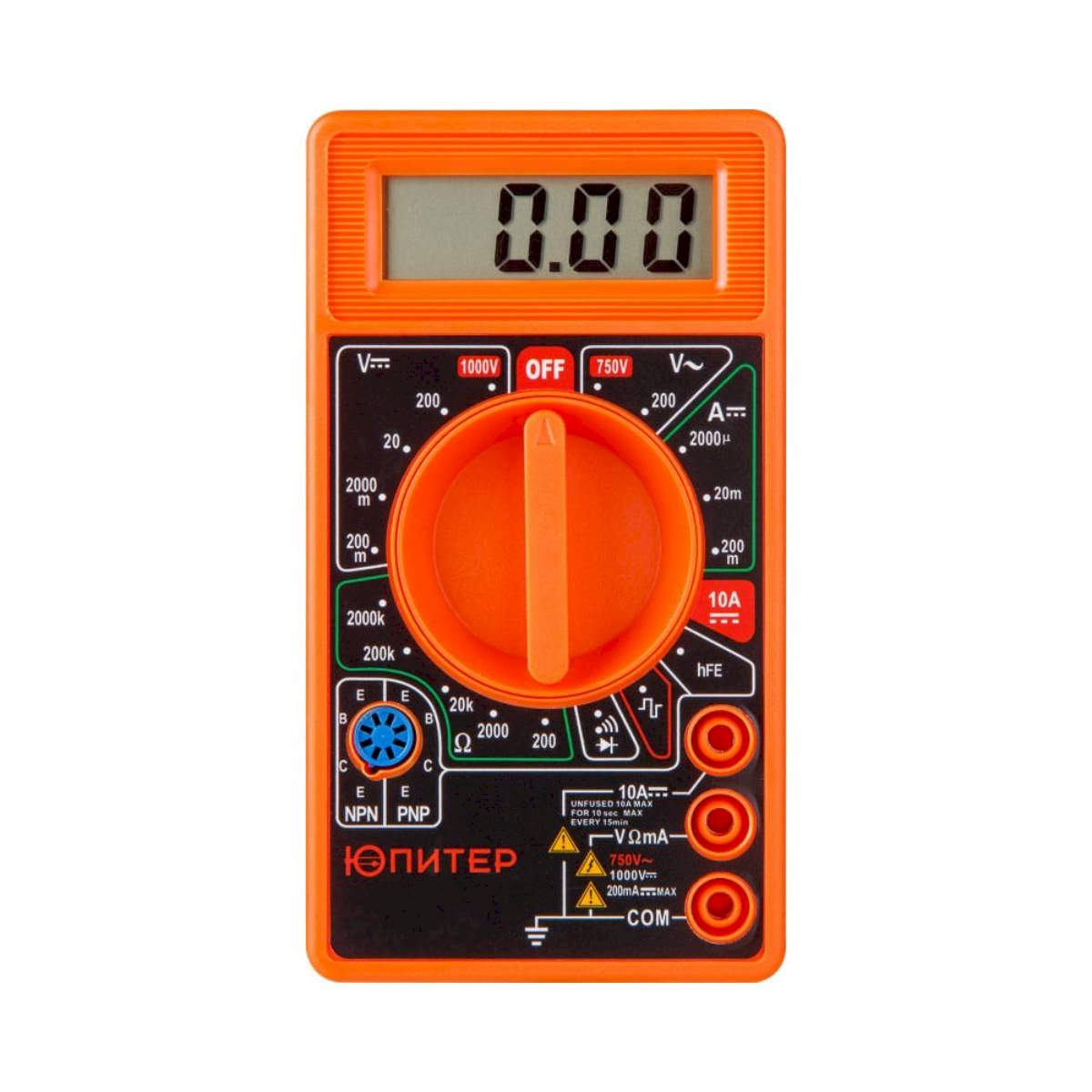 Мультиметр цифровой ЮПИТЕР 832 цифровой мультиметр представляет собой портативный универсальный прибор и используется для измерения параметров электрических цепей. Является незаменимым помощником в любом доме. Основные измерения прибора: постоянное напряжение, переменное напряжение, постоянный ток, сопротивление, проверка диодов, прозвонка транзисторов, прозвонка цепей.Характеристики: Тип отображения: цифровой.Постоянное напряжение: от 200 мВ до 1000 В.Переменное напряжение: от 200 В до 750 В.Постоянный ток: от 2000 мкА до 10 А.Сопротивление: от 200 Ом до 2000 кОм.Частота: 50 Гц - 60 Гц.