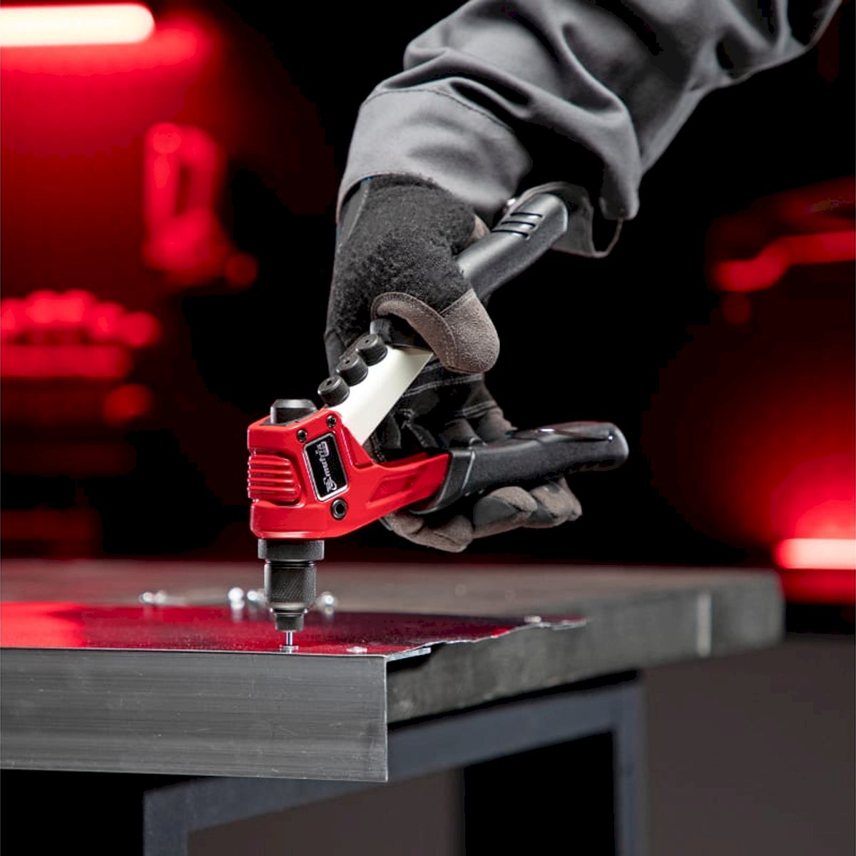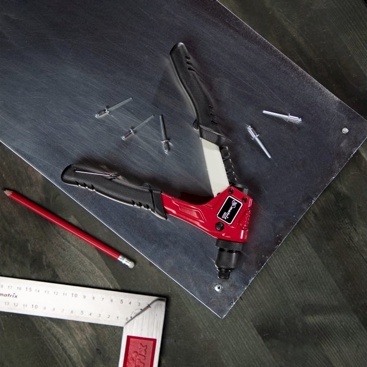 Заклепочник литой, 200 мм, заклепки 2,4-3,2-4,0-4,8 мм, PRO MATRIX 40546 предназначен для скрепления металлических листов с помощью вытяжных заклепок. В комплект входят четыре насадки для заклепок 2.4, 3.2, 4.0 и 4.8 мм.Трехсегментный цанговый зажим изготовлен из Cr-Mo сплава. Благодаря этому данный механизм создает надежную фиксацию вытяжной шпилькиОсобенности заклепочника MATRIX 40546 :Комфортная работаЭргономичные рукоятки обеспечивают удобный захват во время работы и предотвращают выскальзывание инструмента из руки. Технические характеристики заклепочника MATRIX 40546 :Max скрепляемая толщина: 45 ммТип заклепок: вытяжныеМатериал заклепок: сталь/медь/бронза/полиамидВид упаковки: блистерГабариты без упаковки: 200х120х35 ммТип: стандартныйРазмер заклепок: 2.4; 3.2; 4.0; 4.8 ммКомплектация: заклепочникУсиленный: даВес нетто: 0.528 кгПреимущества заклепочника MATRIX 40546 :Трехсегментный цанговый зажим из Cr-Mo обеспечивает надежную фиксацию вытяжной шпильки.MATRIX 40546 укомплектован насадками для работ с вытяжными заклепками диаметрами 2,4-3,2-4,0-4,8 мм.Корпус заклепочника изготовлен из алюминиевого сплава для долгой службы инструмента.Фиксатор предотвращает самопроизвольное раскрытие рукояток при падении и обеспечивает безопасную транспортировку инструмента.