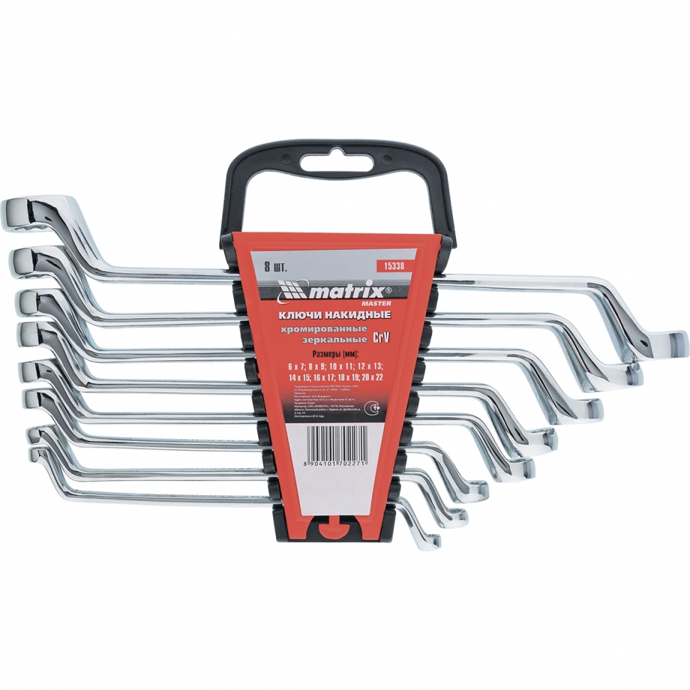 Ключи изготовлены из хромванадиевой стали. Твердость материала рабочей части ключа 39 HRc (требования ГОСТ - 36-41 HRc). Ключи имеют полированное хромоникелевое покрытие. Профиль кольцевого зева имеет 12 граней, что увеличивает площадь соприкосновения рабочих поверхностей и снижает риск деформации граней крепежа при монтаже. Накидные рабочие части ключа смещены относительно его рукоятки, что позволяет работать в труднодоступных местах. Поставляются в комплекте с трапециевидным пластмассовым держателем.