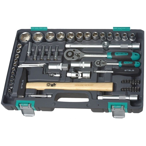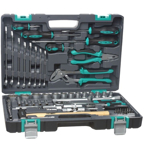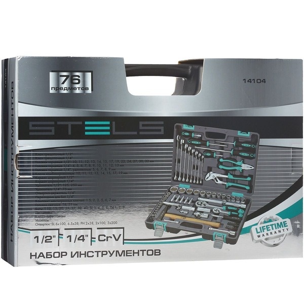 Набор инструментов торговой марки Stels разработан специально для автолюбителей и центров технического обслуживания. Каждый этап производства контролируется в соответствии с международными стандартами. Головки и комбинированные ключи изготовлены из хромованадиевой стали, придающей инструменту исключительную твердость в сочетании с легкостью. Набор упакован в кейс, изготовленный из жесткого противоударного пластика.Состав набора: Ключ трещоточный: 1/2 и 1/4". Головки торцевые 1/2": 10 мм, 11 мм, 12 мм, 13 мм, 14 мм, 15 мм, 17 мм, 19 мм, 22 мм, 24 мм, 27 мм, 30 мм, 32 мм. Головки торцевые 1/4": 4 мм, 5 мм, 6 мм, 7 мм, 8 мм, 9 мм, 10 мм, 11 мм, 12 мм, 13 мм. Головки торцевые 1/4", удлиненные: 5 мм, 6 мм, 7 мм, 8 мм, 9 мм. Ключи комбинированные: 10 мм, 11 мм, 12 мм, 13 мм, 14 мм, 15 мм, 17 мм, 19 мм. Кардан шарнирный: 1/2" и 1/4". Удлинитель 1/2": 125 мм, 250 мм. Удлинитель 1/4": 75 мм. Отвертка-держатель 1/4". Переходник для бит 1/4". Комплект шестигранных ключей: 1,5 мм, 2 мм, 3 мм, 5 мм, 6 мм, 7 мм. Головки свечные: 16 мм, 21 мм. Биты: Т10, Т15, Т20, Т25, Т27, Т30, Т40, SL3, SL4, SL5, SL6, PH1, PH2, PH3. Пассатижи. Клещи переставные. Молоток. Отвертки: SL6 x 100, SL6,5 x 38, PH2 x 38, PH2 x 100, PH3 x 200.