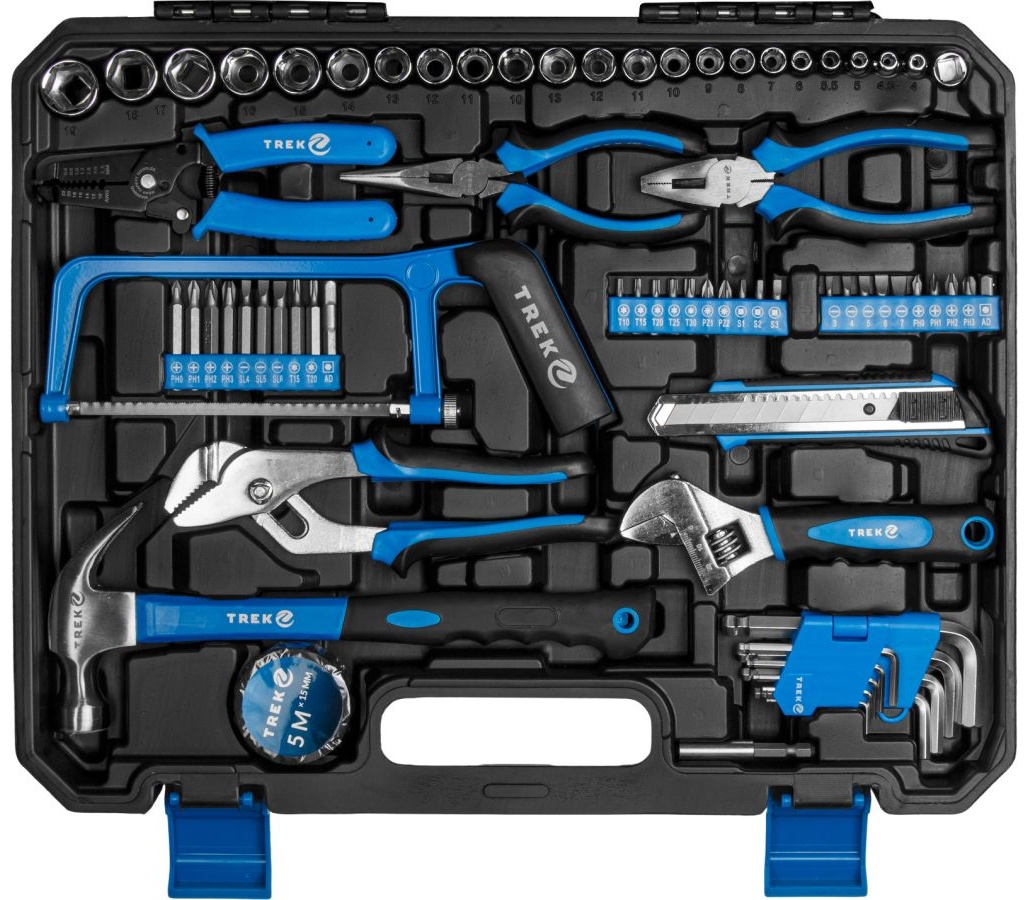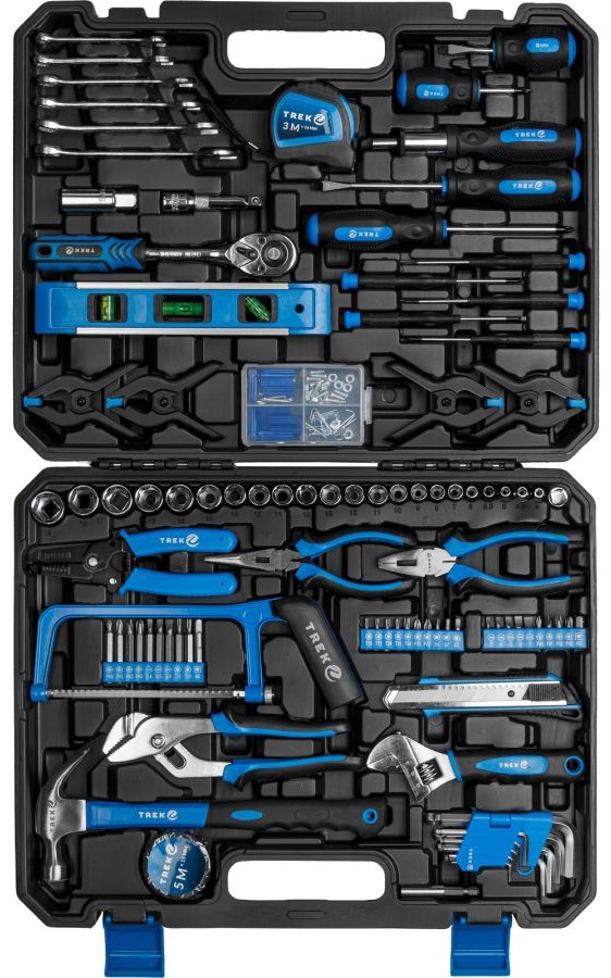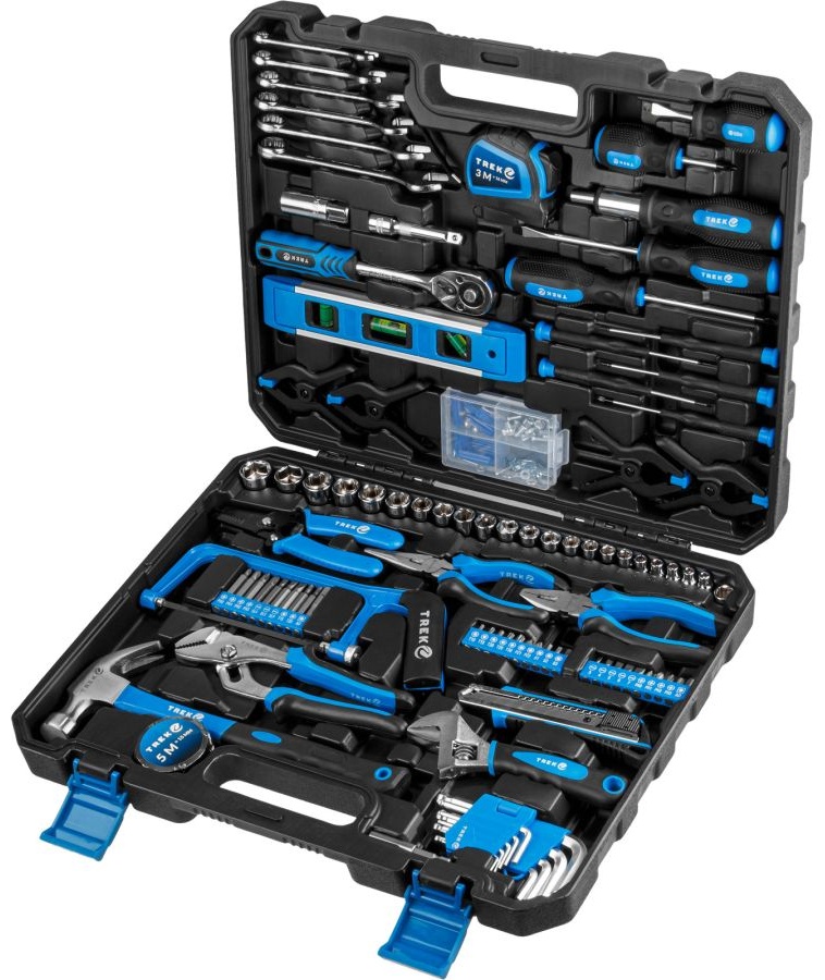Многофункциональный набор инструментов TREK предназначен для широкого спектра строительных, слесарно-монтажных и бытовых работ, а также для ремонта и обслуживания автомобиля. Универсальная комплектация делает его удобным как для домашнего мастера, так и для профессионального использования.