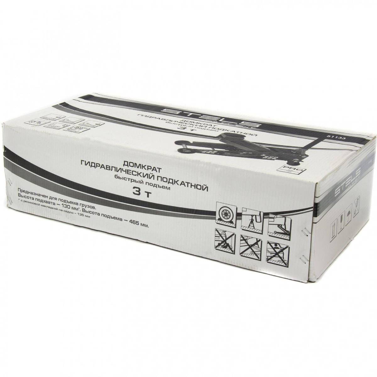 Профессиональный подкатной гидравлический домкрат Stels QUICK LIFT используется для быстрого подъема на высоту 130-465 мм всех типов автомобилей со стандартным клиренсом и массой до 3 тонн. Благодаря системе QUICK LIFT для достижения предельной высоты достаточно 7 качков рукоятки. Домкрат подходит для использования на станциях техобслуживания и шиномонтажа.Преимущества:Резиновая опора защищает груз и сам домкрат от повреждений.Карданная передача обеспечивает надежность и долговечность оборудования.Защитный клапан предохраняет домкрат от перегрузки при попытках поднять автомобиль тяжелее 3 тонн.Двухплунжерный насос сохраняет работоспособность даже при выходе из строя одного из плунжеров – домкрат будет работать за счет второго.Хромированные штоки и резиновые сальники обеспечивают износостойкость оборудования.Благодаря лотку для мелких деталей болты и гайки не потеряются.Ручка домкрата прорезинена, поэтому не повредит корпус автомобиля.Домкрат прошел тестирование с 25%-м превышением допустимой нагрузки, что подтверждает его высокое качество.