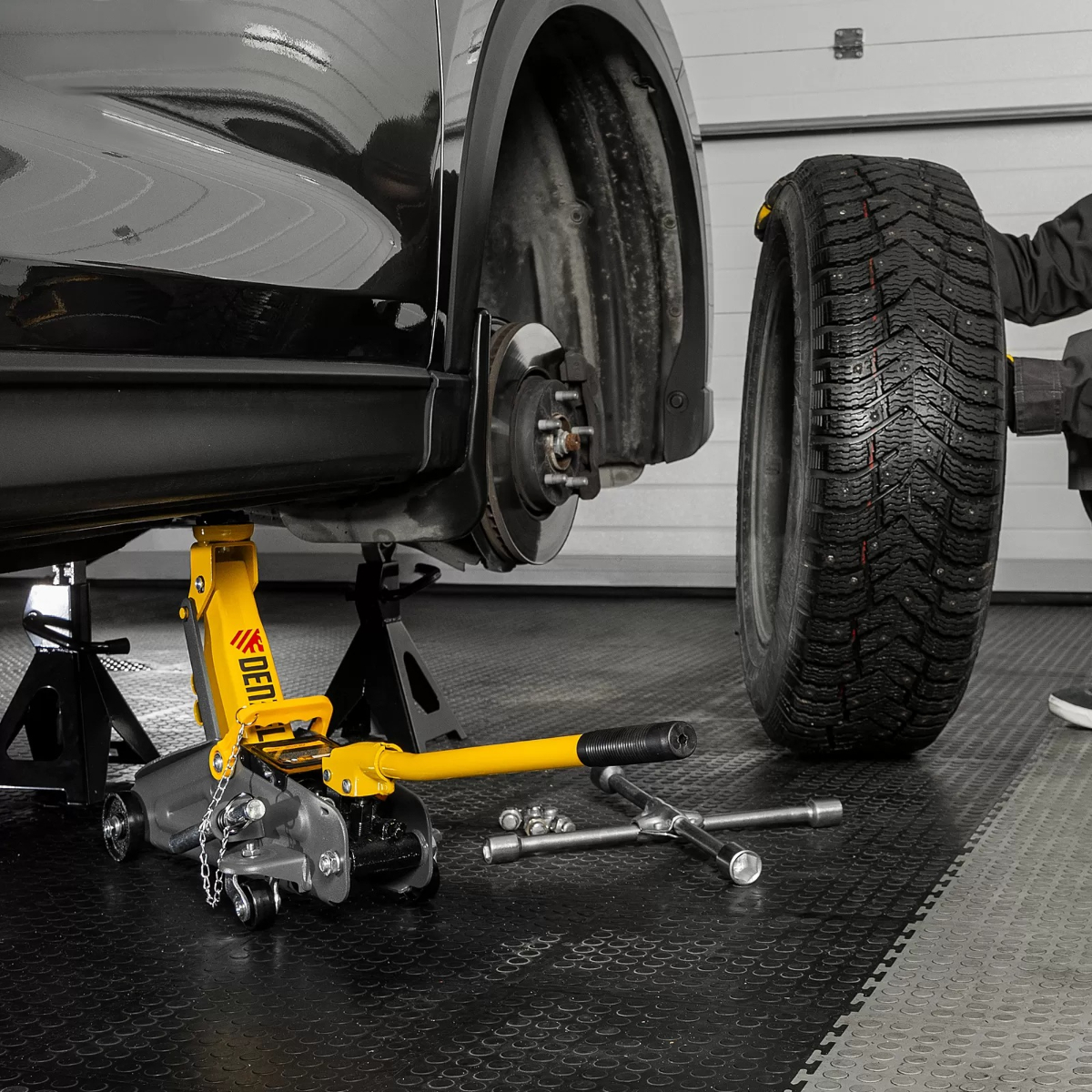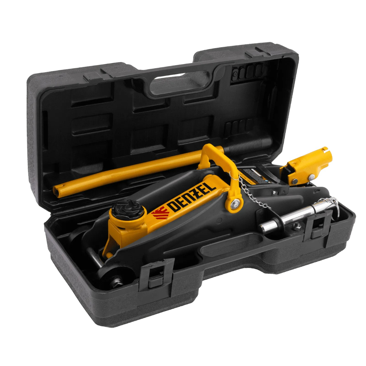 Гидравлический подкатной домкрат с фиксатором Denzel 51154, с высотой подхвата 130 мм, предназначен для плавного подъема грузов массой до 2 т на высоту до 330 мм. Страховочный штифт позволяет фиксировать подъемный рычаг на высоте 260 и 300 мм для безопасной работы. Домкрат пригодится владельцам легковых автомобилей со стандартным клиренсом. ПреимуществаЗащита от поломки – предохранительный клапан не допускает подъема груза массой более 2 т.Резиновая поворотная опора – груз надежно фиксируется, а кузов авто защищен от повреждений.Эргономичность – домкрат имеет переставную рукоятку для комфортного перемещения и извлечения из-под автомобиля.Удобное хранение и транспортировка – домкрат поставляется в прочном пластиковом кейсе.Грузоподъемность, кг: 2000Высота подхвата, мм: 130Высота подъема, мм: 330Количество насосов: 1Вес, кг: 10,2