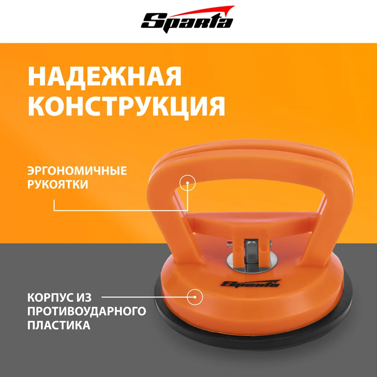 Стеклодомкрат SPARTA 875055 - служит для захвата, удержания и перемещения стекол, зеркал, кафельной плитки и других гладких материалов весом до 40 кг. Имеет вакуумную присоску, которая после складывания рукоятки бережно прижимается к чистой сухой поверхности и прочно фиксируется на ней. Инструмент пригодится во время ремонтных и отделочных работ.Преимущества :Корпус одинарного стеклодомкрата изготовлен из противоударного пластика, поэтому устойчив к механическим повреждениям и прослужит долгоБлагодаря надежной фиксации присоски стеклодомкрат подходит для длительного удерживания предметовЭргономичные рукоятки обеспечивают комфортную эксплуатацию стеклодомкратаКомплектация :Стеклодомкрат 1 шт.Характеристики :Бренд: SPARTAГрузоподъёмность: 25 кгДиаметр присосок: 117 ммКоличество присосок: 1 шт.