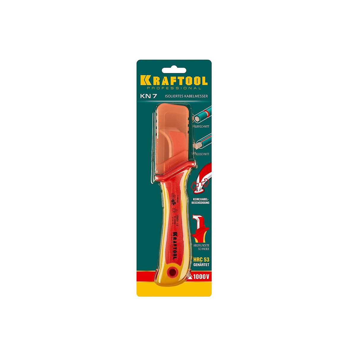 Нож диэлектрический KRAFTOOL 45400, предназначен для электромонтажных работНож монтерский диэлектрический KRAFTOOL изготовлен из высококачественной стали с закалкой рабочих поверхностей, применяется для профессионального использования. Для работы под напряжением до 1000 В, рукоятка испытана на соответствие нормам VDE. Длина 200 мм, твердость лезвия: 51...53 HRC
