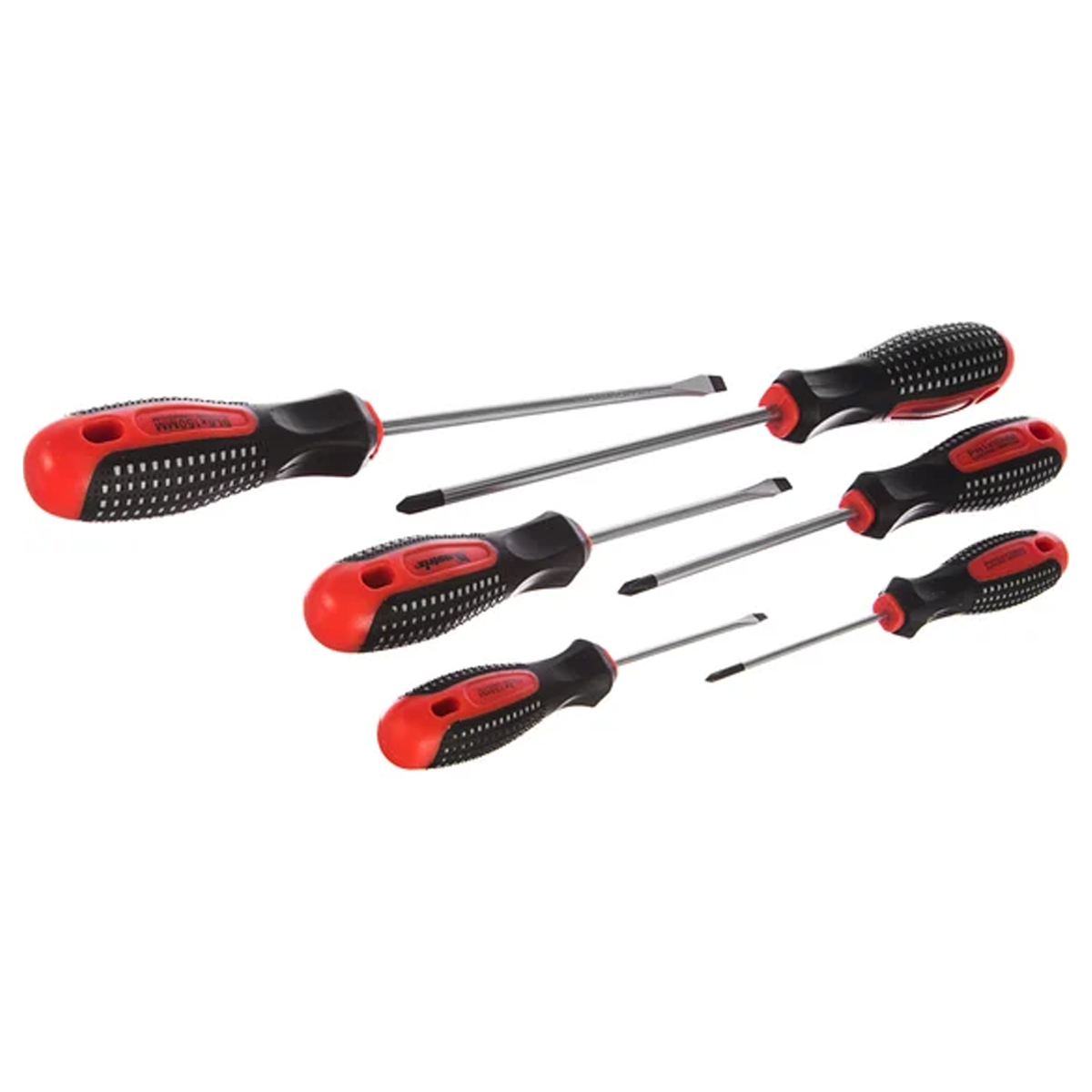 Планируете дополнить или обновить арсенал отверток? Обратите внимание на набор от бренда MATRIX. В него входит 6 отверток со шлицами PH0, PH1, PH2, SL3, SL5, SL6. Они подойдут как для бытового, так и для профессионального применения – монтажа и демонтажа соединений. Высокий рейтинг набора и отзывы на нашем сайте подтверждают его качество и надежность.Набор профессиональных отверток Fusion 6 шт Matrix 13351 пригодится при выполнении различных работ, связанных с монтажом и демонтажом резьбовых соединений. Стержни набора выполнены из хромванадиевой стали. Трехкомпонентные рукоятки не скользят в руке, что обеспечивает комфортную работу и снижает нагрузку на кисть. На рукоятке есть отверстие - все отвертки можно хранить в подвешенном состоянии.Особенности набора отверток MATRIX 13351Надежный захватТрехкомпонентные рукоятки обеспечивают удобную работу и надежный захват, что позволяет снизить нагрузку на кисть при длительном применении.Технические характеристики набора отверток MATRIX 13351Тип наконечника: Phillips (PH)/Slotted (SL)Материал рукояти: 3-х компонентныйДиэлектрическое покрытие: нетНамагниченный наконечник: нетУдарная: нетДля точных работ: нетМатериал стержня: CrVДлина стержня: 120 ммФорма ручки: ПрямаяГибкая: нетТрещоточный механизм: нетКоличество в наборе: 6 штГабариты без упаковки: 313х142х43 ммВес нетто: 0.463 кгТип шлица: PH; SLПреимущества набора отверток MATRIX 13351Стержень из хромванадиевой стали;6 штук в наборе;Отверстия для подвешивания;Износостойкость;В наборе профессиональных отверток Fusion 6 шт Matrix 13351 представлены инструменты с различными шлицами.