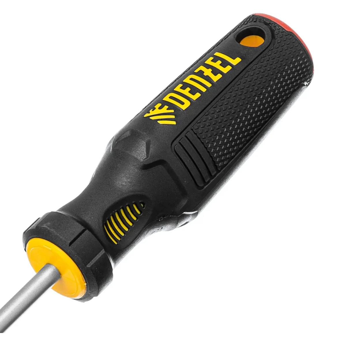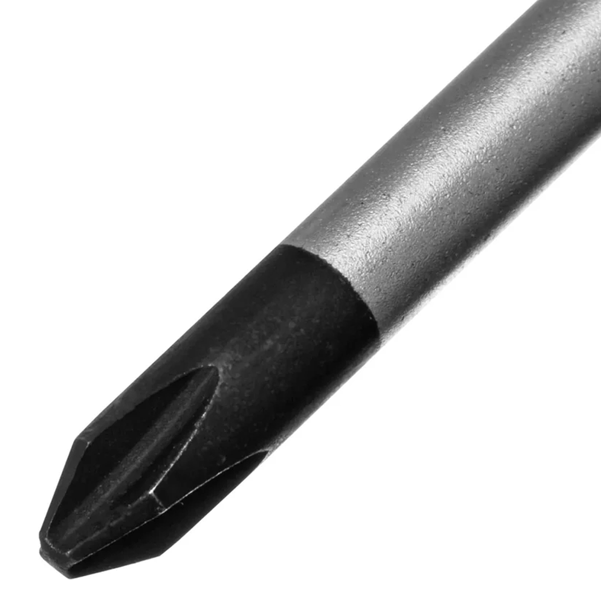 Отвертка с трехкомпонентной рукояткой со стержнем из стали S2 предназначена для закручивания и откручивания резьбового крепежа. Высокоточный намагниченный шлиц избавляет мастера от необходимости придерживать винт или саморез рукой. Отвертка рекомендована для профессионального использования.Технические характеристики :Тип наконечника: Phillips (PH)Размер шлица: PH2Длина стержня: 150 ммМатериал стержня: высоколегированная сталь S2Форма ручки: ПрямаяУдарная: нетМатериал рукояти: 3-х компонентныйДиэлектрическое покрытие: нетНамагниченный наконечник: даДля точных работ: нетГибкая: нетЦвет рукояти: черный/желтый/красныйПреимущества :Прочность – стержень изготовлен из стали S2 и закален до твердости 60 HRCИзносостойкость и защита от коррозии – шлиц фосфатирован, на стержень нанесено никелевое покрытиеРабота в сложных условиях – трехкомпонентная рукоятка обладает масло- и бензостойкостьюБыстрый поиск нужного инструмента – на затыльнике имеется цветовая маркировка, позволяющая определить типоразмер отверткиКомфортная эксплуатация без усталости – эргономичная рукоятка с резиновыми вставками и подпальцевыми выемками не выскальзывает из ладониУдобное хранение – отверстие в рукоятке позволяет подвешивать отвертку на крючок или скобу