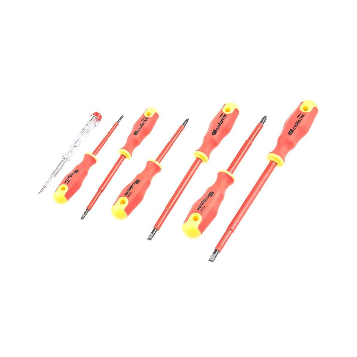 Набор отверток Сибртех 12936 станет отличным выбором для специалистов, которые работают с электроустановками, рабочее напряжение в которых может достигать 1000 В. В комплект включены 6 отверток (с прямыми и крестообразными наконечниками) и отвертка-пробник. Важной особенностью инструментов является наличие магнитных свойств наконечников отверток. Вероятность потери крепежа будет значительно снижена.Отвертки, которые входят в набор Сибртех 12936, изготовлены с применением хромованадиевой стали, великолепные физические свойства которой общеизвестны. Инструменты из хромованадиевой стали долговечны. Стоит отметить и эргономичную форму двухкомпонентных рукояток отверток. Инструменты не будут скользить в руках, а при длительной работе с крепежом вы не будете испытывать усталости. Конструкция картонной коробки, в которую упакован набор, подразумевает возможность ознакомления с внешним видом отверток без распаковки.4 отвертки с прямым шлицем: SL3×75 мм, SL4×100 мм, SL5,5×125 мм, SL6,5×150 мм;2 отвертки с крестовым шлицем: PH1×80 мм, PH2×100 мм.