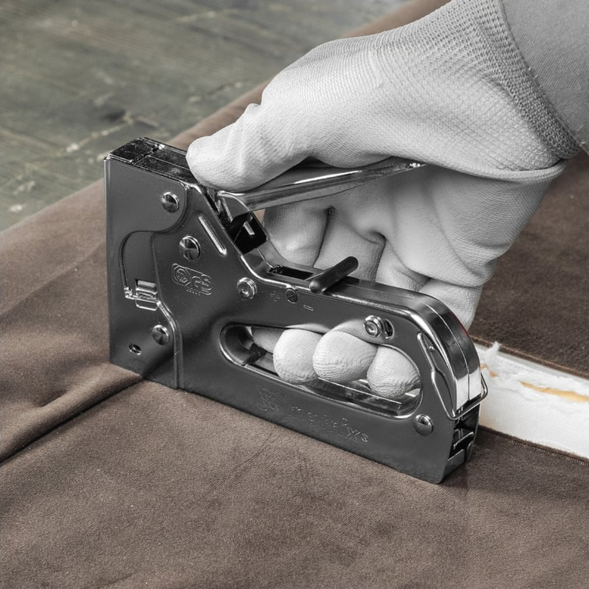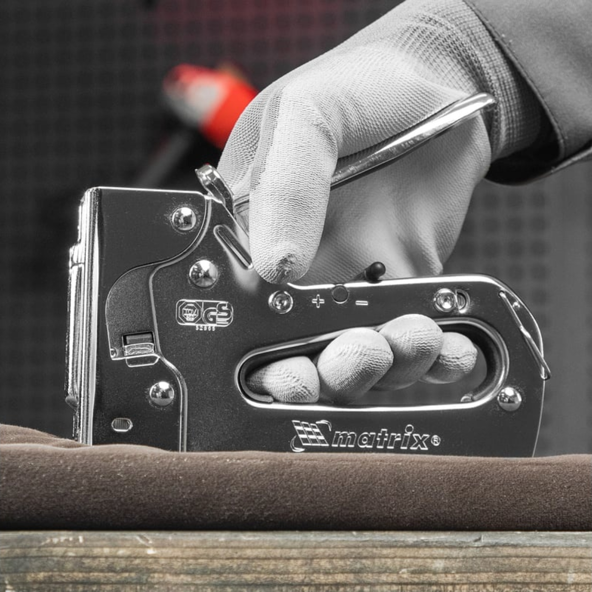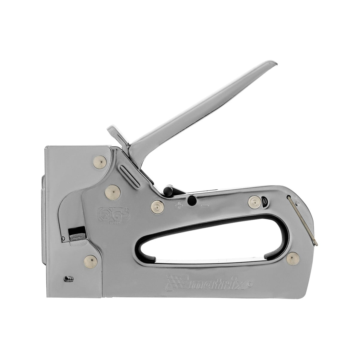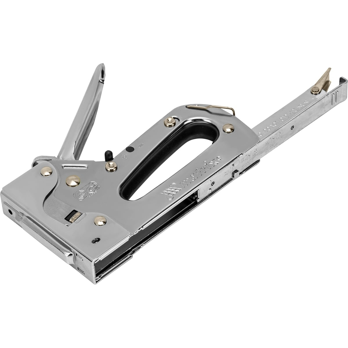 Металлический мебельный степлер Matrix Professional 40913 – инструмент с регулируемой мощностью удара, применяемый для закрепления листовых материалов на деревянных основаниях при помощи скоб типа 53 размером 6-14 мм. Подходит для работы с фанерой, оргалитом, ДВП, ДСП, пленкой и утеплителем. Продуманная конструкция позволяет быстро загружать скобы в скобоприемник, экономя время мастера. Рессорная пружина обеспечивает плавность работы. Степлер используют для сборки шкафов, обивки мягкой мебели, укладки ковровых покрытий и при выполнении прочих крепежных работ.Технические характеристики степлера MATRIX 40913Подходящая расходка: скобы и гвозди (штифты)Тип гвоздей: 47/F/055/049/300/J/SK50Тип скоб: 53/AМатериал корпуса: стальУдлиненный "носик": нетФункция повторного удара: нетИндикатор замены скоб: естьСкобозабивной-молоток: нетРегулировка силы удара: естьТип инструмента: степлерДлина гвоздей: 15 ммУпаковка: блистерРазмер скоб: 6-14 ммВес нетто: 0.544 кг