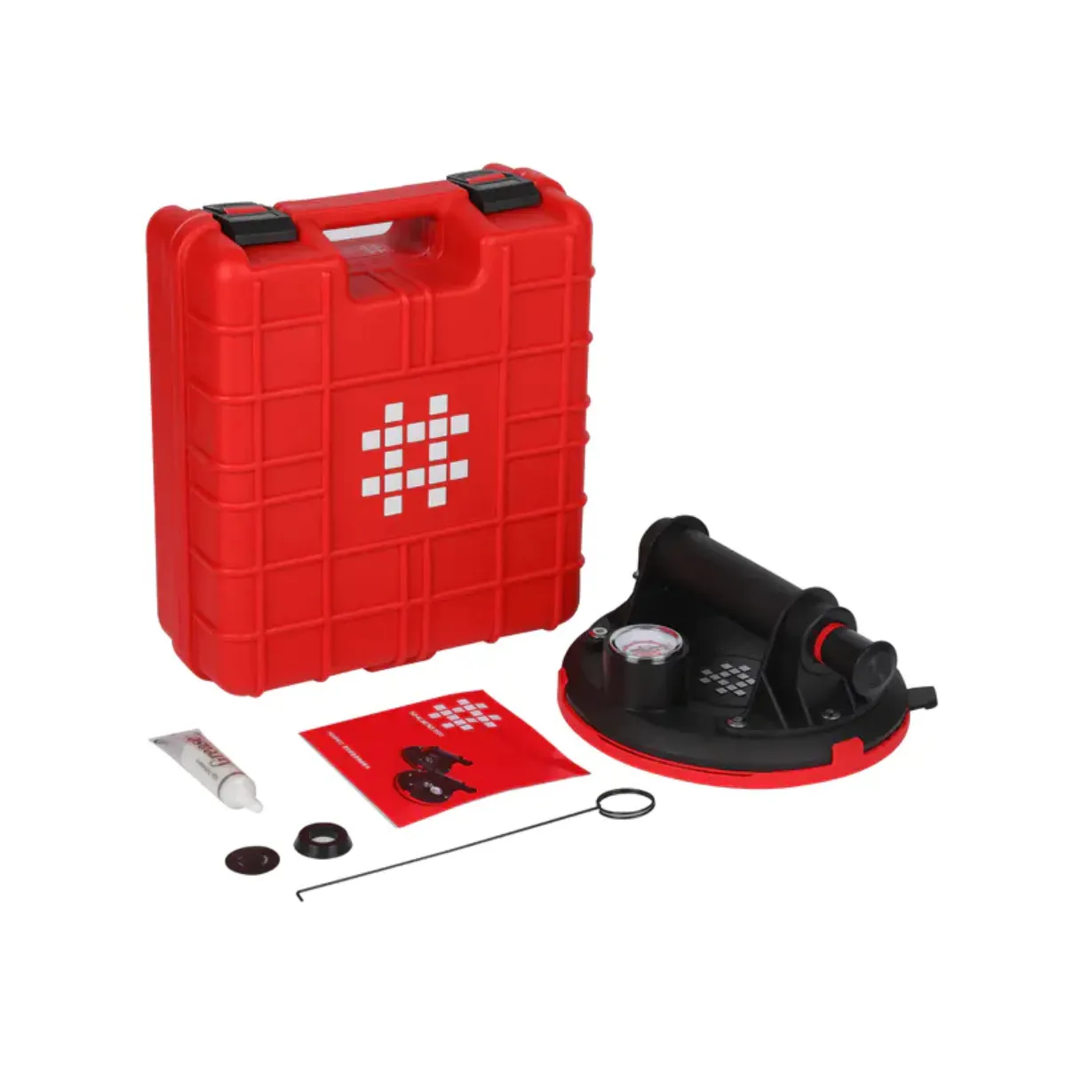 Вакуумная помповая присоска имеет диаметр 200 мм в основания чаши и грузоподъёмность 140кг. Присоска оснащена уменьшенным манометр для более удобного и комфортного хвата любой рукой.