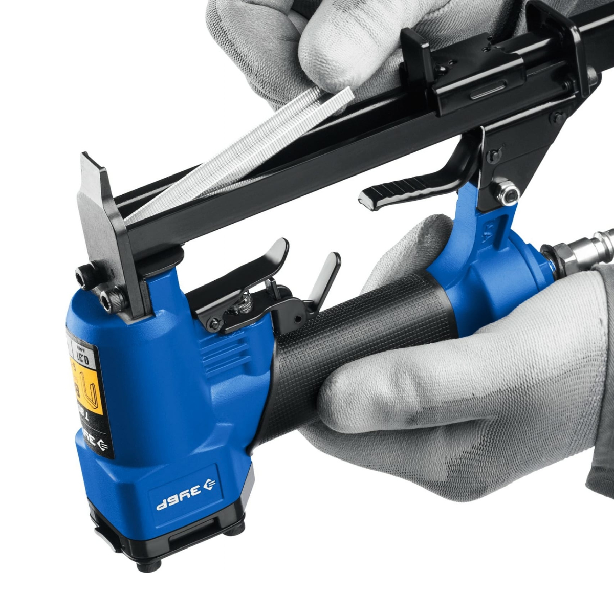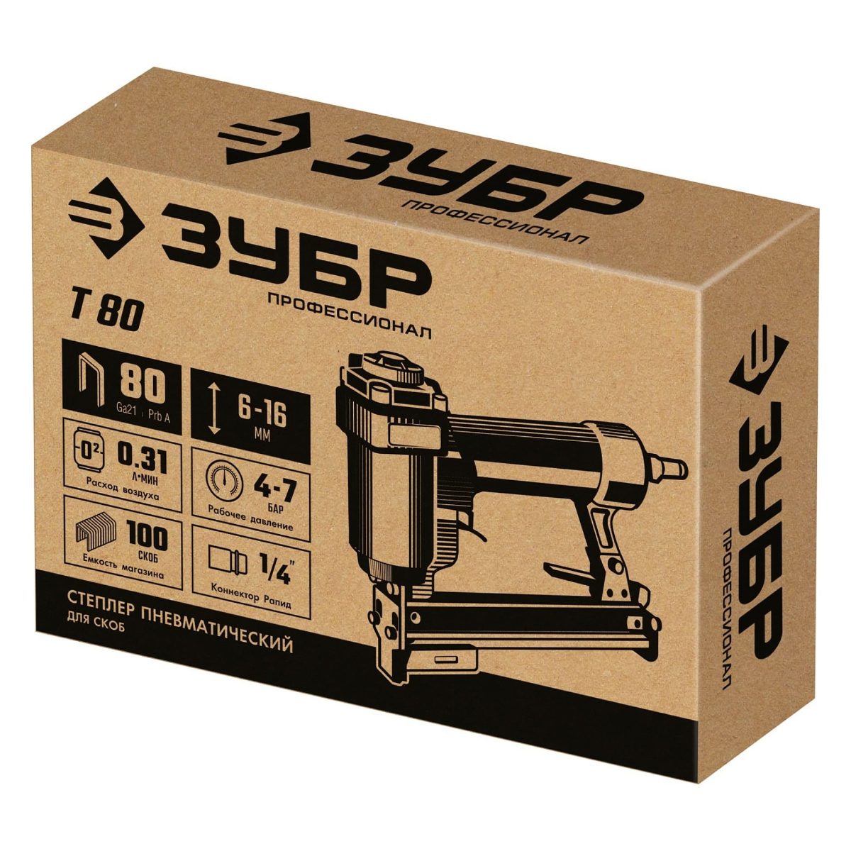 Пневматический степлер для скоб ЗУБР Т80 тип 80 31938 представляет собой профессиональный пневматический скобозабиватель, произведенный из высококачественных материалов. Позволяет быстро и эффективно выполнить свою работу. Предусмотрена обрезиненная рукоятка для удобства хвата.ПреимуществаЛитой алюминиевый корпус ЗУБР Т80 31938Обрезиненная рукоятка для удобства хватаПростота в использованииБольшой магазин на 100 скобУстойчив к перегреву, пожаробезопасенНизкое потребление воздуха на ударХарактеристики:Подходящая расходка: скобыТип скоб: 80/GA21Диаметр воздушного штуцера, дюйм: 1/4FТип соединения: рапид (EURO)Вес: 0,85 кгРазмер скоб, мм: 6 - 16Количество скоб в магазине, шт.: 100Средний расход воздуха, л/мин: 0,31