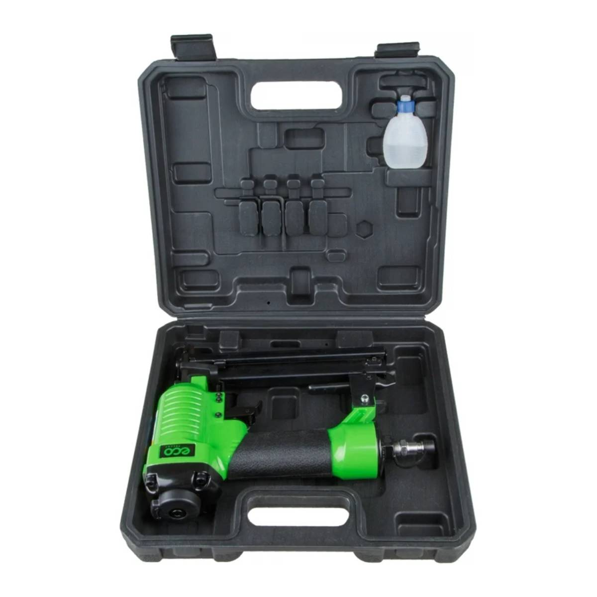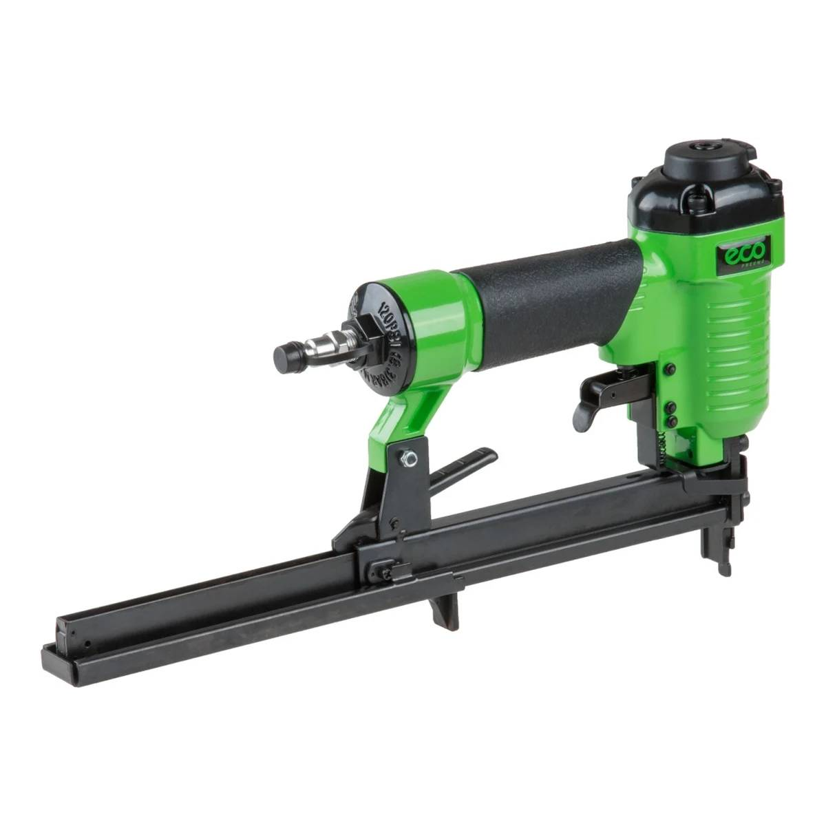 Пневмостеплер подойдет для работ в домашней мастерской или на мебельном производстве. Прорезиненная рукоятка облегчает захват и не скользит в руке. Работа на сжатом воздухе обеспечивает больший рабочий ресурс по сравнению с электроинструментом.Преимущества:Алюминиевый корпус для долгого срока службыПредохранитель от случайного нажатияНескользящая резиновая ручка для удобной работыДефлектор отвода воздухаРегулировка глубины забиванияУдобный чемодан для хранения и транспортировки Характеристики:Тип соединения: рапид (EURO)Подходящая расходка: скобыДавление: 8.19 атмДиаметр воздушного штуцера: 1/4F дюймРасход воздуха: 48 л/минРасход воздуха на удар: 0.8 л/ударВес нетто: 1.25 кгГабариты упаковки: 280*73*252 ммЕмкость магазина: 100 штДлина ножек скобы: 6 - 22 ммШирина скобы: 11,2 мм