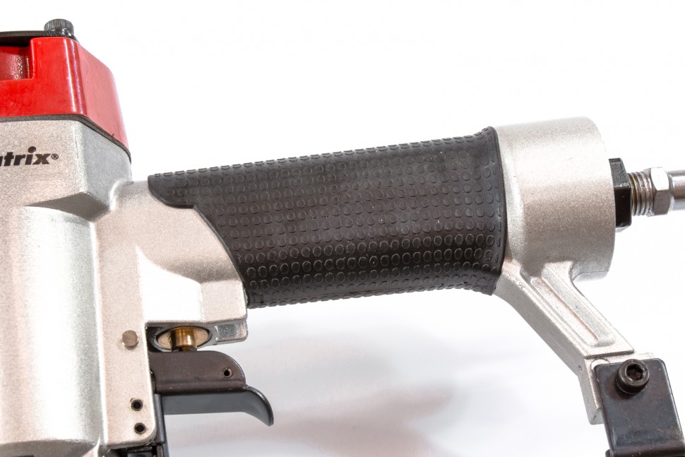 Пневматический гвоздезабивочный пистолет с емкостью магазина на 100 паркетных гвоздей размера 18 предназначен для быстрого и надежного крепления паркетной доски, фанеры, ДВП, гипсокартона, кожи, ткани и бумаги к деревянным поверхностям.Диапазон рабочего давления – 65–110 фунтов на кв. дюйм (0,55–0,76 МПа).Бренд "MATRIX" производит ручной инструмент с 2003 года. В ассортименте торговой марки "MATRIX" - слесарный, столярный, режущий, строительно-отделочный, измерительный инструмент и крепежные изделия. Несколько последних лет фирма также производит и электроинструменты. Инструменты бренда MATRIX крайне надёжны, обладают высочайшим качеством и легки в применении. При этом компания MATRIX не забывает снабжать свои модели одним из самых прогрессивных дизайнов среди аналогов фирм-конкурентов.
