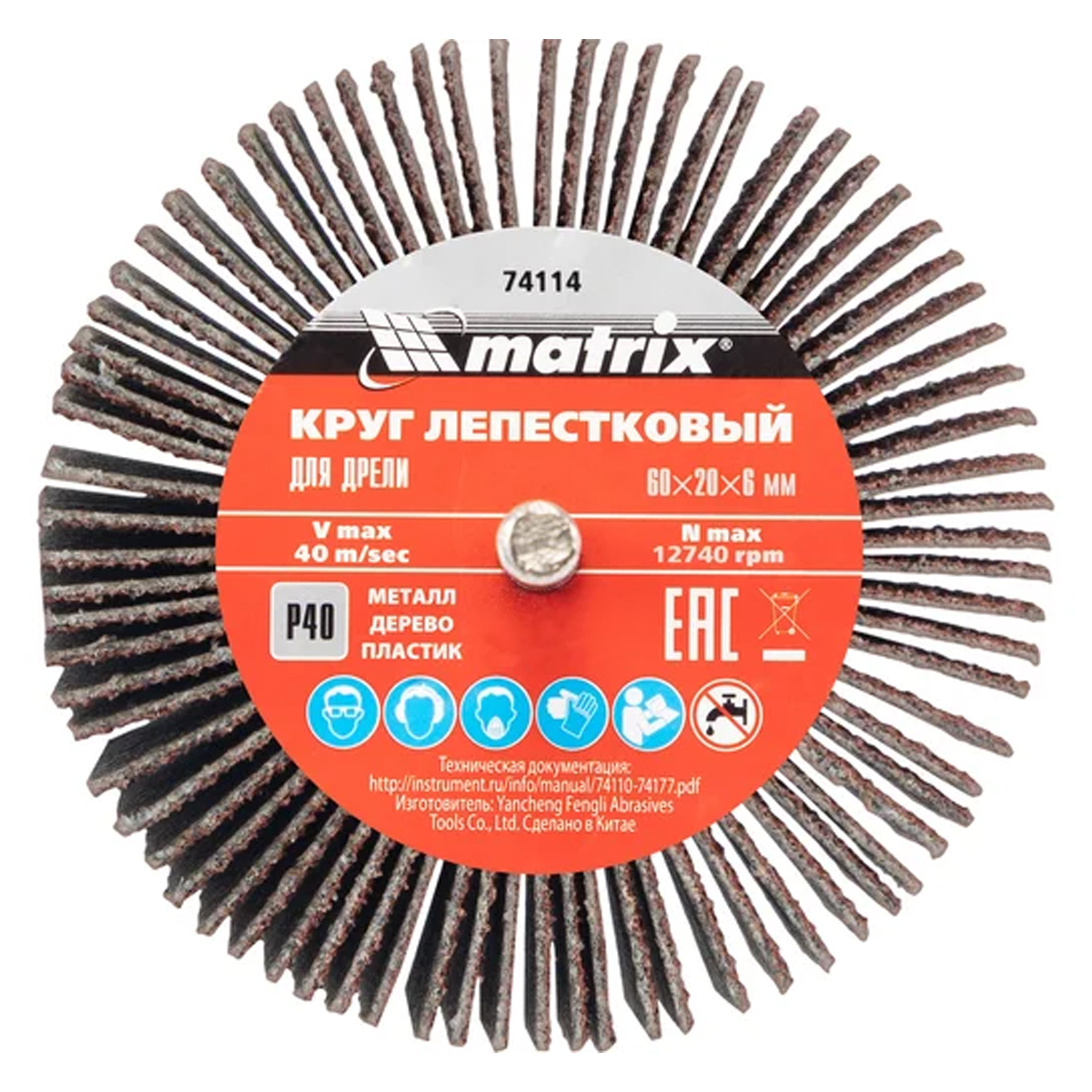 Лепестковый круг для дрели Matrix 74114, 60 х 20 х 6 мм, с зернистостью P 80, используется совместно с дрелями и прямыми шлифовальными машинами с посадочным диаметром 6 мм и максимальной скоростью вращения 8000 об/мин. Оснастка предназначена для радиального шлифования внутренних и наружных поверхностей. Абразив P 80 позволяет проводить промежуточную обработку древесины и металла - удалять заусенцы, слои лака, ржавчины или краски, зачищать сварные швы, готовить поверхности к чистовому шлифованию.Технические характеристики лепесткового круга для дрели MATRIX 74114 :Диаметр: 60 ммВысота рабочей части: 20 ммХвостовик: 6 ммЗернистость: 80