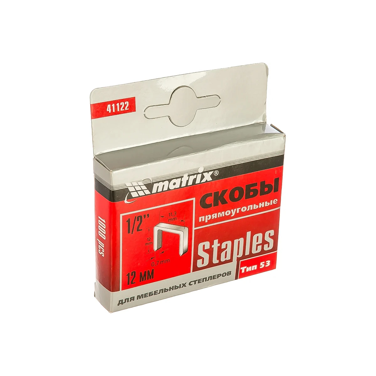 Скобы Matrix 41122 размером 12 х 11,3 х 1 мм, тип 53, 1000 шт. в упаковке, предназначены для скрепления материалов при помощи мебельного степлера. Подходят для работы с древесиной, фанерой, картоном, ДСП, оргалитом и т. д. Будут полезны во время ремонтных и отделочных работ, пригодятся для обшивки мебели.Технические характеристики скоб MATRIX 12 мм, тип 53, 1000шт.Фасовка: 1000 штВес нетто: 0.094 кгДлина: 12 ммТип (классификация производителя): 53Тип скоб : 53/AФорма: тонкаяШирина: 11.2-11.4 (7/16 дюйма) ммНожка : стандартнаяТолщина: 0.7-0.75 ммМатериал: стальНазначение: ткань/картон/тонкие деревянные планки