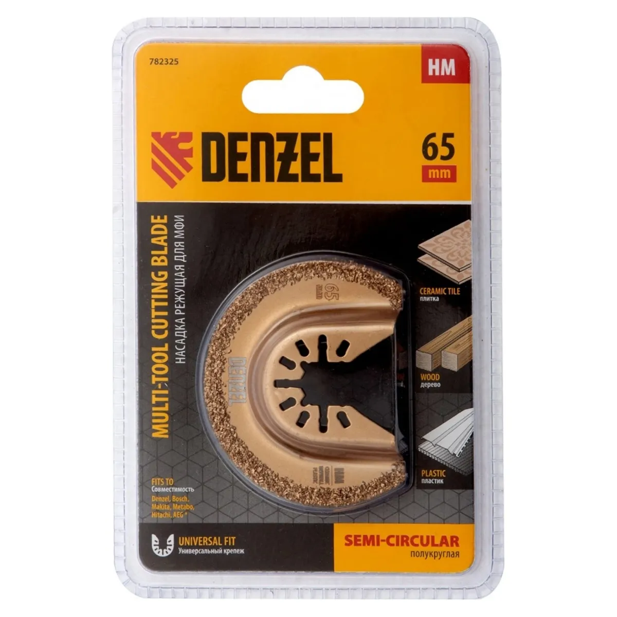 Насадка режущая полукруг HM по плитке и дереву 65 мм для МФИ Denzel 782325 предназначена для обработки мягкой плитки, керамики, плиточных швов, гипсокартона, твердых пластиков и дерева с помощью многофункционального инструмента (МФИ). Подходит для удаления клея из шва между керамическими плитками, вырезания внутренних углов плитки, кирпичей, облицовки стен для выполнения проемов. Не предназначена для работ по керамограниту. Изготовлена из высококачественной инструментальной стали с твердосплавным напылением.Характеристики:Ширина режущей части (мм): 78Посадка: универсальная посадка под МФИТип обработки: резаниеМатериал: инструментальная сталь