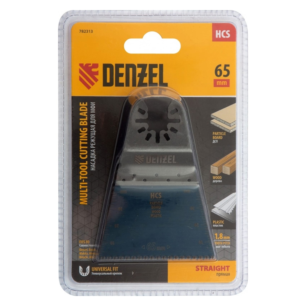 Насадка режущая прямая HCS по дереву, ламинату 65х1.8 мм, крупный зуб для МФИ Denzel 782313 предназначена для резки дерева, фанеры, ламинированных покрытий, пластика, гипсокартона с помощью многофункционального инструмента (МФИ). Подходит для прямолинейного реза доски и фанеры, подрезания облицовки стен и наличников заподлицо, вырезания больших проемов в листовых материалах под провода, кабели, трубы. Двойной ряд зубьев обеспечивает высокую скорость и чистоту реза. Изготовлена из высокоуглеродистой инструментальной стали. Шаг зубьев 1.8 мм.Характеристики:Материал: деревоНазначение: резШирина: 65 ммТип соединения насадки: OQIS