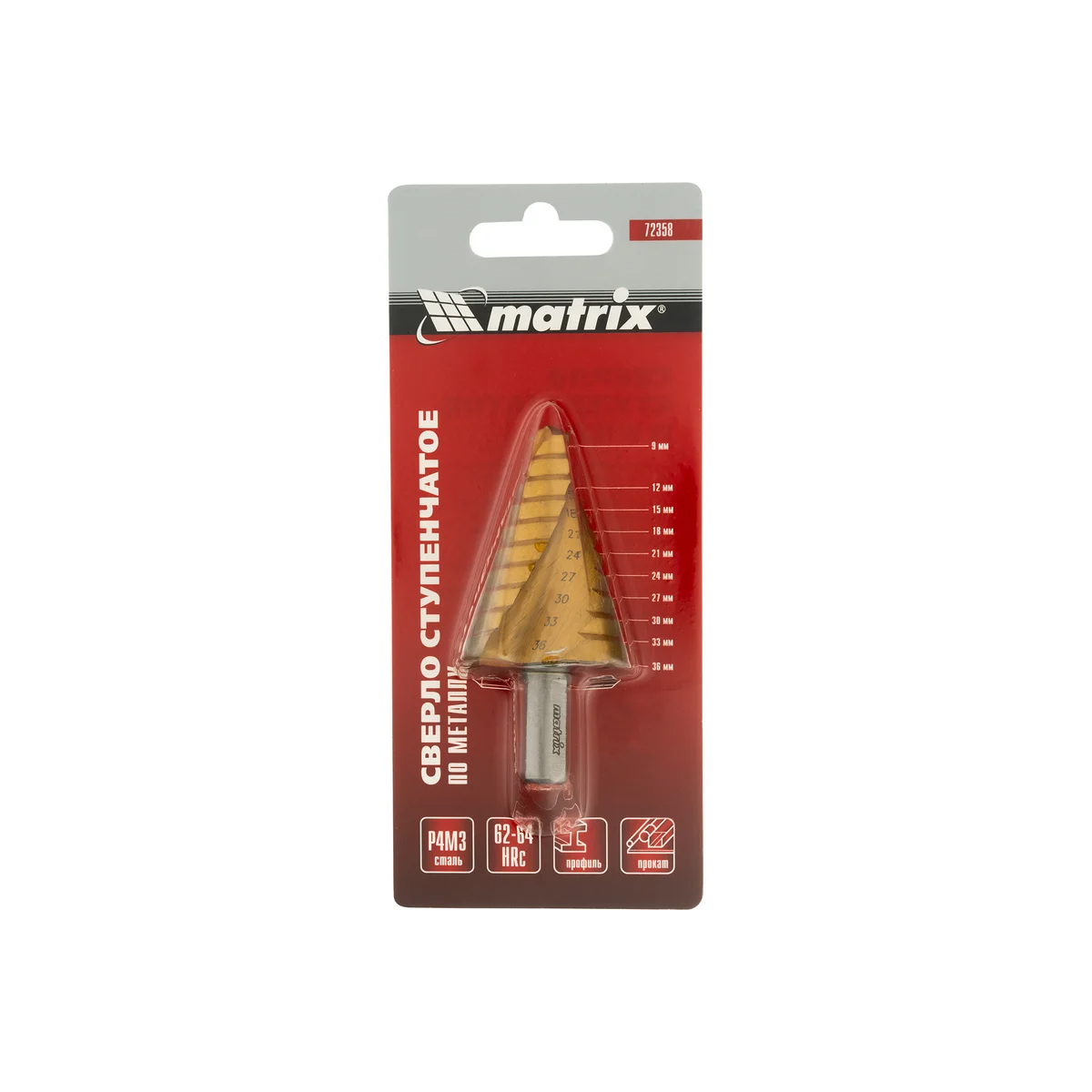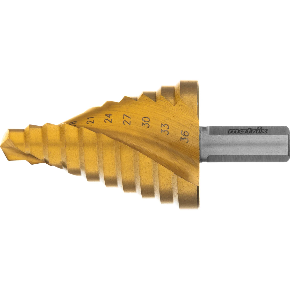 Сверло ступенчатое, 9-12-15-18-21-24-27-30-33-36 мм, HSS, спирал. проф., трехгр. хвостовик// Matrix