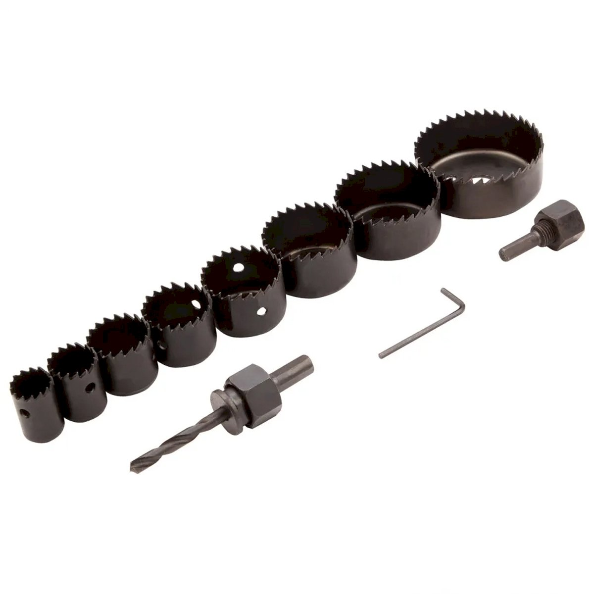 Набор кольцевых пил по дереву, 19-64 мм 11 предм, MATRIX 70473 предназначен для вырезания круглых отверстий диаметром 19-64 мм и глубиной до 27 мм. Входящие в комплект коронки подходят для работы по дереву, фанере, пластику, ламинату, гипсокартону, ДСП. С их помощью можно подготовить поверхность к установке розеток, светильников, выключателей, а также прокладке труб. Коронки устанавливают на электродрели. Для защиты пилы от проворачивания в комплекте предусмотрена специальная проставка. Набор пригодится во время ремонта и будет полезен в быту.Технические характеристики набора кольцевых пил по дереву MATRIX 70473 :Диаметры коронок, входящих в набор: 19, 22, 29, 32, 38, 44, 51, 64 ммMin диаметр: 19 ммMax диаметр: 64 ммЦентрирующее сверло в комплекте: естьДержатель в комплекте: естьКоличество коронок: 8 штКоличество предметов в наборе: 11 штСоединение коронки: 5/8 дюймаMax глубина сверления: 27 ммТип сверления: сухоеРазборная: естьНазначение: по деревуПо дереву: даПо металлу: нетПо керамике: нетПо стеклу: нетПо пластику: даПо нержавеющей стали: нетПо цветному металлу: нетВес нетто: 0.46 кгПо кирпичу: нетПо бетону: нетКейс: даПреимущества набора кольцевых пил по дереву MATRIX 70473 :Кольцевые пилы обладают высоким ресурсом, поскольку изготовлены из прочной углеродистой стали, устойчивой к повреждениям и износуРежущие кромки долго сохраняют остроту, тк имеют твердость 40 HRCКоронки характеризуются высокой производительностью благодаря разведенным зубьям, обеспечивающим эффективное удаление стружкиПилы удобно центрировать во время сверления, поскольку они комплектуются направляющим сверломСверло надежно фиксируется шестигранным ключом 2,5 мм, входящим в комплектНабор удобно хранить и транспортировать, поскольку он упакован в пластиковый кейс с ложементами