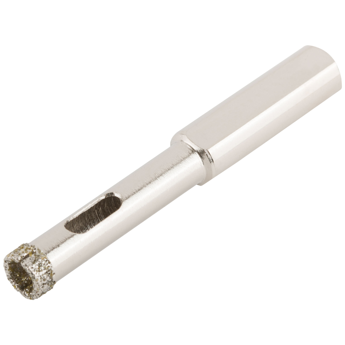 Трехгранный хвостик. Для вырезания круговых отверстий в керамограните, камне, стекле, кафельной плитке. Влажное сверление. Материал: инструментальная сталь, режущая кромка содержит порошок из технических алмазов. Упаковка: блистер.Характеристики:Количество: 2 шт.Размер: 8х67 мм