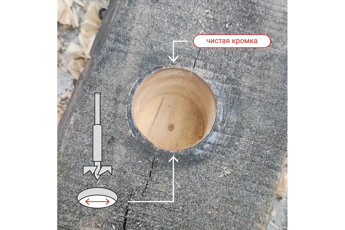 Чистый рез: Конструкция сверла позволяет получать отверстия с ровным дном и гладкими стенками без сколов на кромке.
