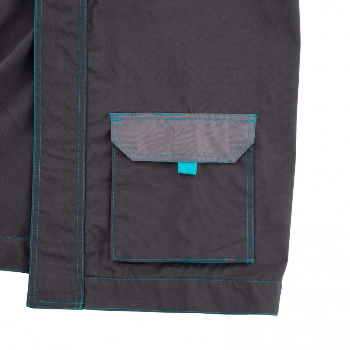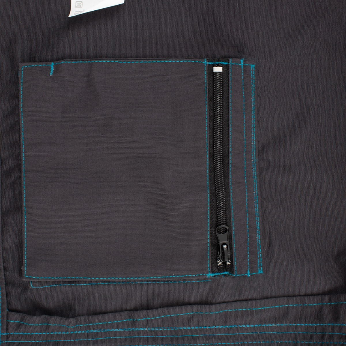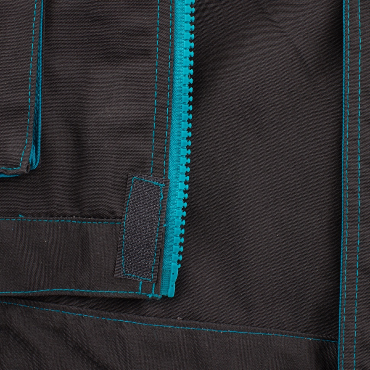 Профессиональная рабочая куртка защищает от травм, а также ветра и загрязнений. Рассчитана на рост 188-191 см и предназначена для использования в теплое время года или в отапливаемом помещении. Куртка изготовлена из смесовой ткани, содержащей 35% хлопка, что обеспечивает ей дышащие свойства. Полиэстер в составе материала повышает износостойкость спецодежды. Куртка будет полезна рабочим в промышленной, строительной сфере, во время обслуживания автомобилей и выполнения других работ.Преимущества:Благодаря ветрозащитному клапану на центральной молнии куртка не продувается.Вентиляционные отверстия в области пройм обеспечивают тепло- и влагоотведение.Влагостойкие нашивки на плечах, локтях и карманах защищают куртку от промокания.Манжеты регулируются липучками, что обеспечивает комфорт при ношении куртки.У куртки 6 карманов, в которых можно разместить инструменты, мобильный телефон и необходимые мелочи, а застежки-липучки не позволят этим предметам потеряться.Предусмотрен специальный нагрудный карман для бейджа на цепочке.Характеристики:Размер: XXL 52-54Рост: 188 см - 191 смОбхват груди: 122 см -126 смОбхват талии: 106 см - 110 смЦвет: черныйСостав: хлопок 35%, полиэстер 65%