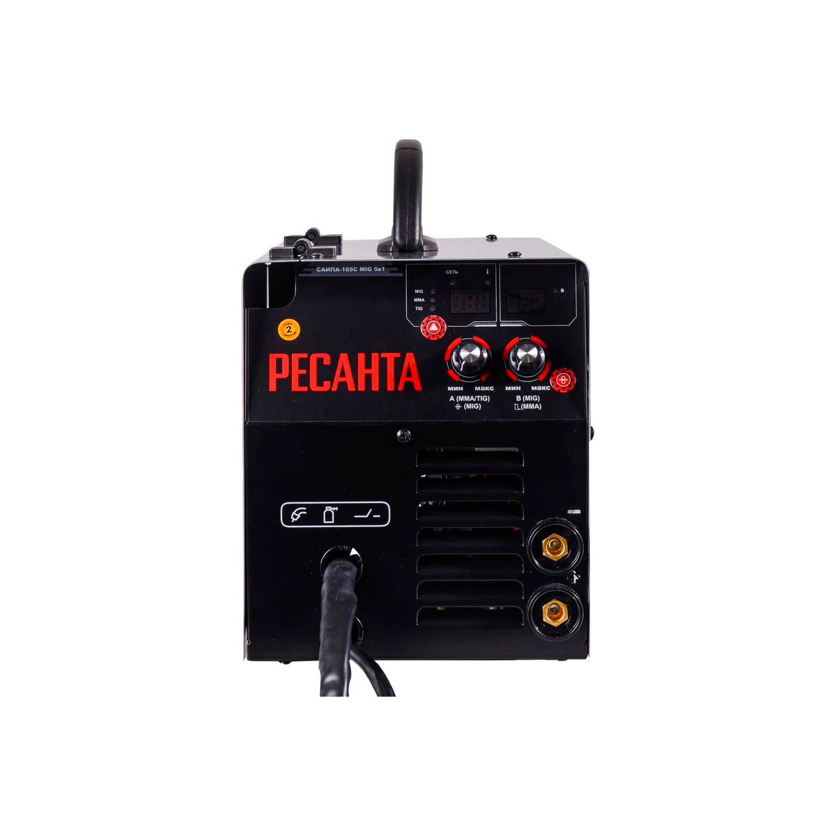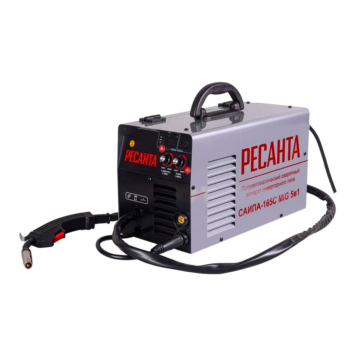 Ресанта САИПА-165С MIG 5в1 – сварочный полуавтоматический инверторный аппарат с режимами сварки MIG/MAG и MMA, обеспечивающий соединение элементов из черных или цветных металлов. Однофазный полуавтомат отличается простотой использования. Автоматическая подача проволоки повысит производительность, так как не требуется перерыв на замену электрода, обеспечит аккуратность швов. Возможность прогона проволоки на холостом ходу позволяет моментально очистить сопло горелки. Модель обеспечивает быструю и качественную сварку заготовок методом MIG/MAG, пригодным для сред из инертных и активных газов, или MMA (ручная дуговая сварка штучными электродами). Удобной опцией является возможность проведения сварки без применения газа с применением порошковой проволоки. Сварочный аппарат отличается наличием таких важных функций, как Antistick (антиприлипание электрода), Hotstart (облегчение старта за счет автоматического повышения сварочного тока), Arcforce (устойчивость дуги), смена полярности (защита тонкого материала от прожигания), защита от перегрева. На корпусе устройства имеются регуляторы сварочного тока, напряжения, скорости автоматической подачи проволоки, силовые клеммы, индикатор подключения.Эффективная и простая в эксплуатации модель Ресанта САИПА 165С пригодится в быту, автомастерской, на строительном или ином
