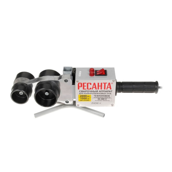 Сварочный паяльник для полипропиленовых труб РЕСАНТА АСПТ-2000 предназначен для ручной сварки в раструб полипропиленовых труб и фитингов небольших размеров. Обеспечивает надёжное диффузное соединение материала.Прибор используется для сварки труб различного диаметра из большинства полимерных материалов. Он надежно соединяет конструкции без протечек в месте шва. Сварка выполняется в месте стыка и не требует применения дополнительных деталей. Насадки имеют антипригарное тефлоновое покрытие, обеспечивающее долгий срок службы. Аппарат оснащен индикатором подключения к сети и контроля температуры. Также предусмотрена подставка, на которую можно установить прибор при перерывах в работе. Есть удобный и вместительный металлический кейс.Важно помнить:Отдельные узлы аппарата во время работы нагреваются.Устройство применяется только для сварки пластиковых труб в условиях отсутствия агрессивных газов.При подключении в электросеть используйте только розетки с заземлением – это поможет избежать электрического удара.Применение в промышленных объёмах, в условиях высокой интенсивности работ и сверхтяжёлых нагрузок, снижает срок службы аппарата.Комплектация:Сварочный аппарат: 1 штНасадки: 6 парПодставка под сварочный аппарат: 1 штРуководство по эксплуатации: 1 штКлюч имбусовый: 1 штРулетка: 1 штНожницы для резки труб: 1 штСпилковые перчатки: 1 параКейс: 1 штХарактеристики:Тип: для сварки полипропиленовых трубТип сварки: раструбная (муфтовая)Тип сварочной насадки: электромуфтоваяТерморегулятор: даПитание: от электросетиМощность, Вт: 2000Рабочая температура, °C: + 50 - 300Диаметр трубы, мм: 20 – 63Глубина сварки, мм: 14 - 26Напряжение сети, В: 220Габариты, см: 47,5 х 31 х 32Вес: 4,85 кг