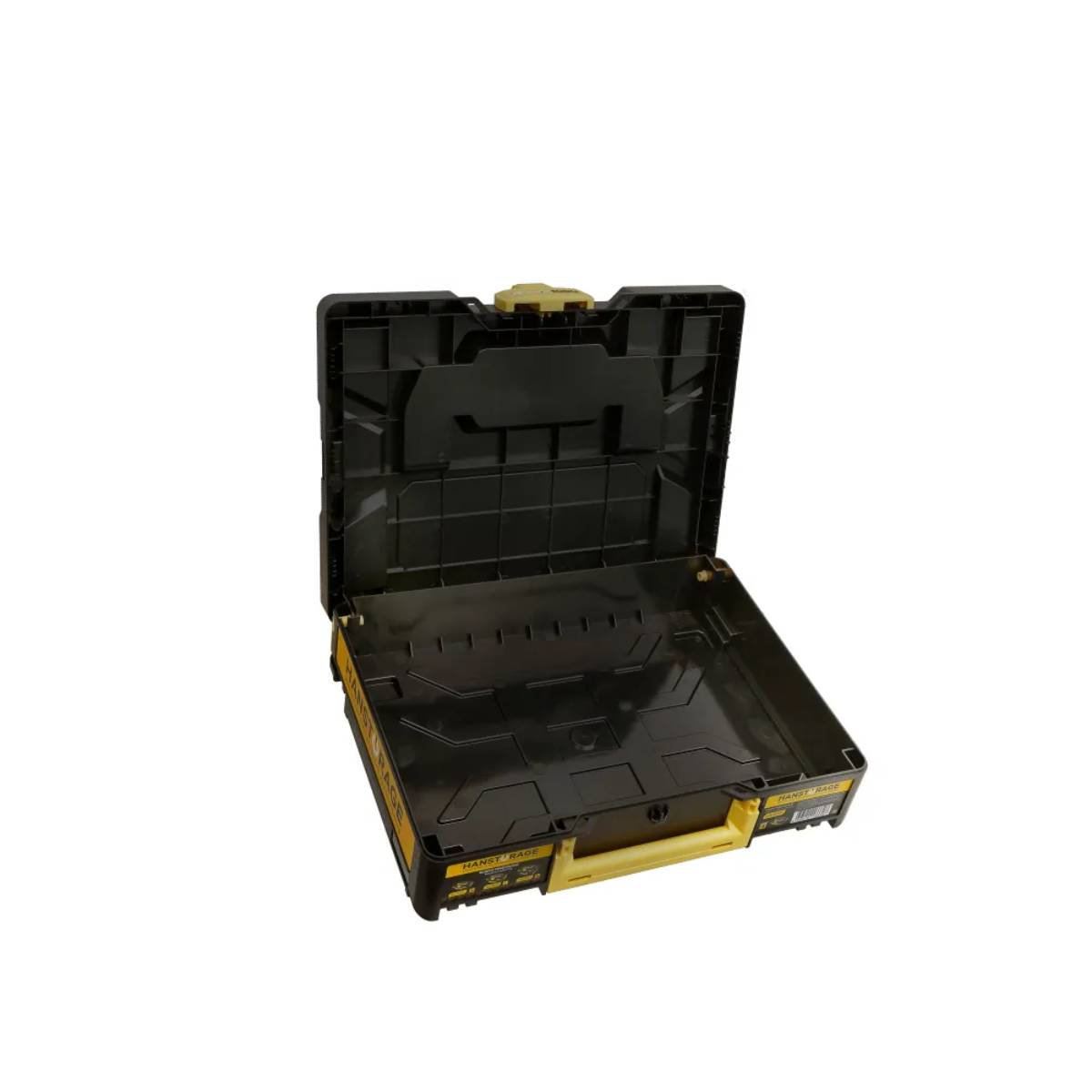 Ящик предназначен для хранения и транспортировки инструмента и инвентаря, может использоваться как отдельно, так и совместно с другими типоразмерами единой системы хранения HANSTORAGE ( S,M,L,XL), образуя при этом единый модуль. К отличительным особенностям можно отнести:HansLock - универсальный поворотный замок, позволяющий без лишних усилий открыть/закрыть ящик или состыковать их между собойМатериал изготовления - ударопрочный пластик, обеспечивающий сохранность внутреннего содержимого при этом, допустимая нагрузка на крышку составляет 100кгЯщик имеет 2 фиксируемые рукоятки для возможности его перемещения и легкого извлечения из стеллажаЯщик модульный внутри не разделен секциями, что позволяет использовать все внутреннее пространство для хранения максимально эффективно.HS105P - ящик модульный размера S - часть единой системы хранения HANSTORAGEХарактеристики:Назначение: универсальныйМатериал: ABSМах нагрузка: 100 кгФорм-фактор: модульныйОбъем: 12.271 лНа колесах: нетУдаропрочный корпус: даМатериал замка: ABS-пластикНаличие ручки: естьКласс товара: профессиональныйВес нетто: 1.52 кгГабариты без упаковки: 395.5x295.5x105 ммМатериал ручки: пластик