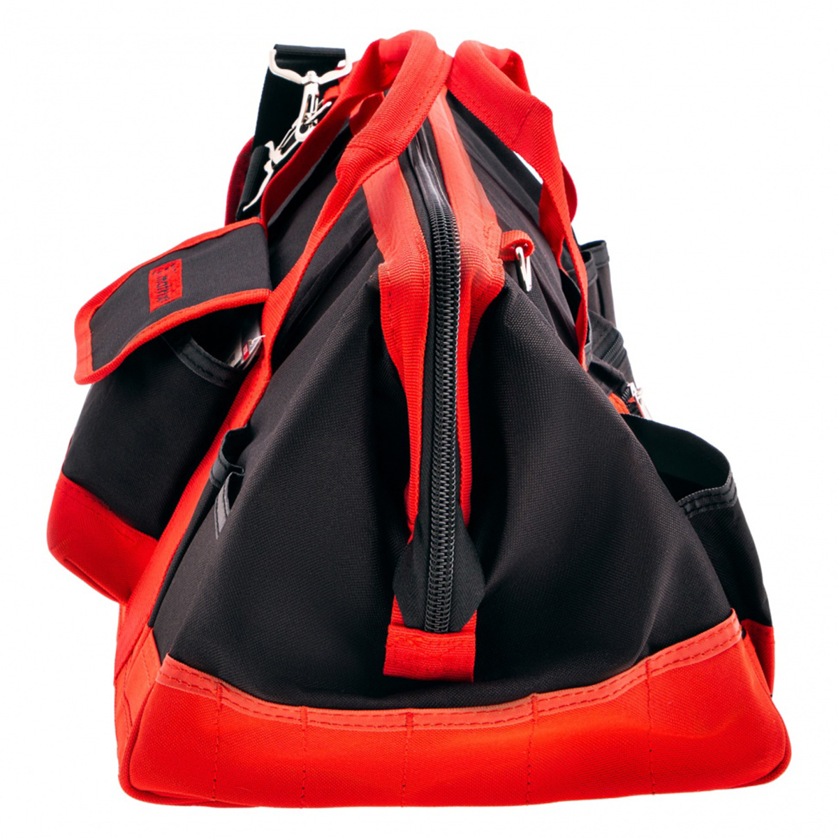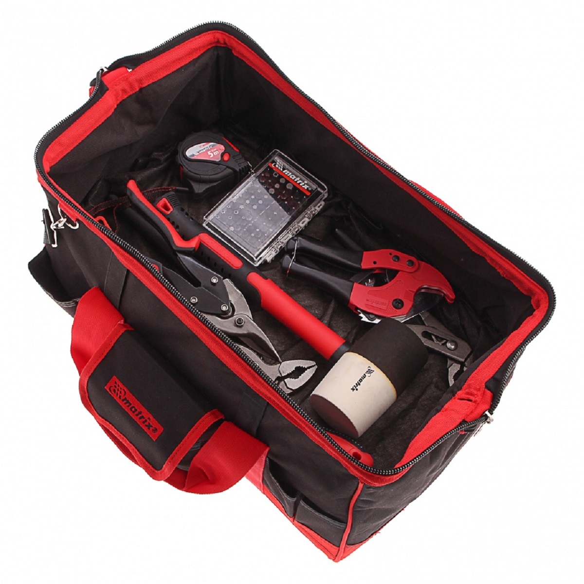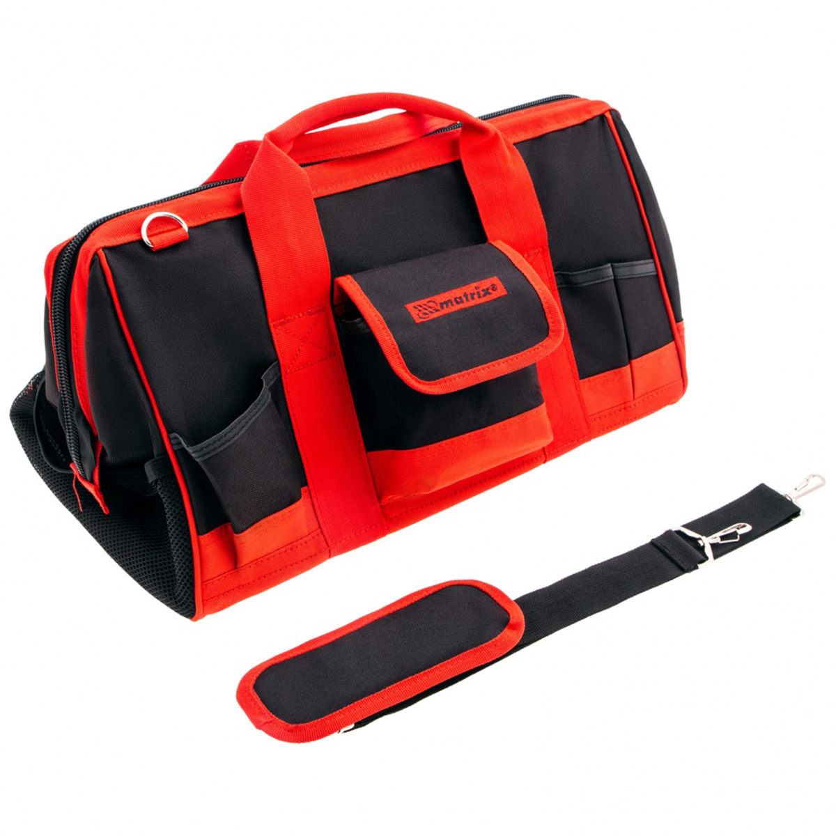 Сумка Matrix 90256 с 32 карманами, 460 х 280 х 305 мм, предназначена для транспортировки и хранения слесарных или столярных инструментов. Может использоваться для перевозки автопринадлежностей. В ней 32 кармана и вместительное основное отделение, в которых можно разместить инструменты разного размера. Сумка комплектуется наплечным ремнем с расширяющей накладкой для удобства переноски. Пригодится монтажникам, слесарям, строителям, будет полезна дома и в поездке.Преимущества:Сумка изготовлена из износостойкого синтетического материала (полиэстера), поэтому рассчитана на длительную эксплуатацию.Полиэстер водонепроницаем, а значит, на инструменты не попадет влага даже при работе под открытым небом.Удобные ручки облегчают транспортировку сумки.Характеристики:Материал: полиэстерКоличество карманов: 32Габариты: 460 x 280 x 305 мм