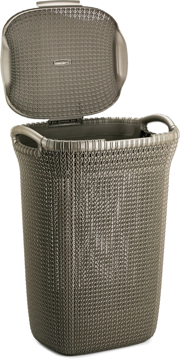 Корзина для белья Curver "Knit" изготовлена из пластика с эффектом плетения. Изделие снабжено двумя ручками для удобной переноски и плотно закрывающейся откидной крышкой. Благодаря перфорированным стенкам воздух проникает внутрь, что способствует вентиляции. Такая корзина прекрасно подойдет для хранения белья перед стиркой. Стильный дизайн впишется в интерьер любой ванной комнаты.Размеры: 62 х 41 х 34 см.