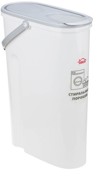 Практичный и стильный контейнер от бренда IDEA предназначен для удобного хранения стирального порошка, капсул или кондиционера. Модель выполнена в элегантном полупрозрачном цвете «смоки» (дымчатый), что позволяет легко контролировать остаток содержимого, при этом скрывая визуальный «шум» от пестрой упаковки бытовой химии.